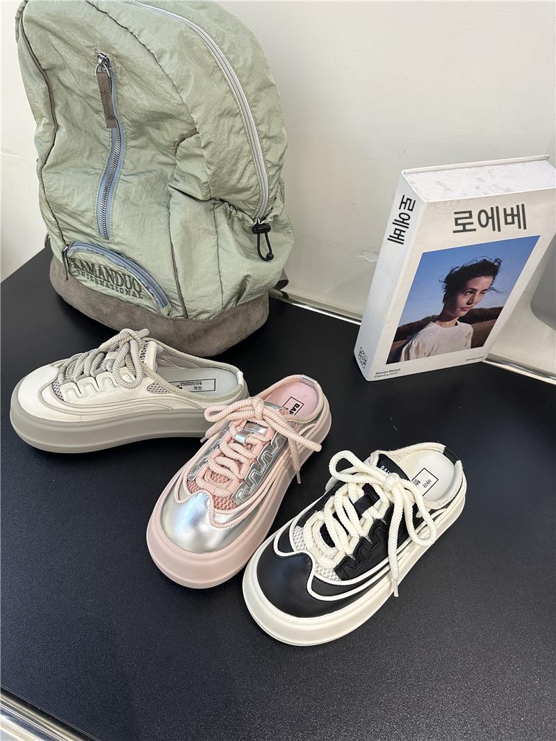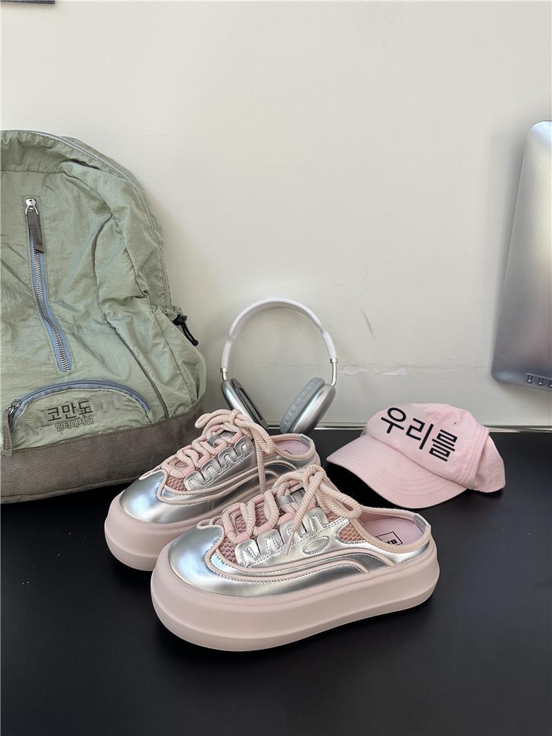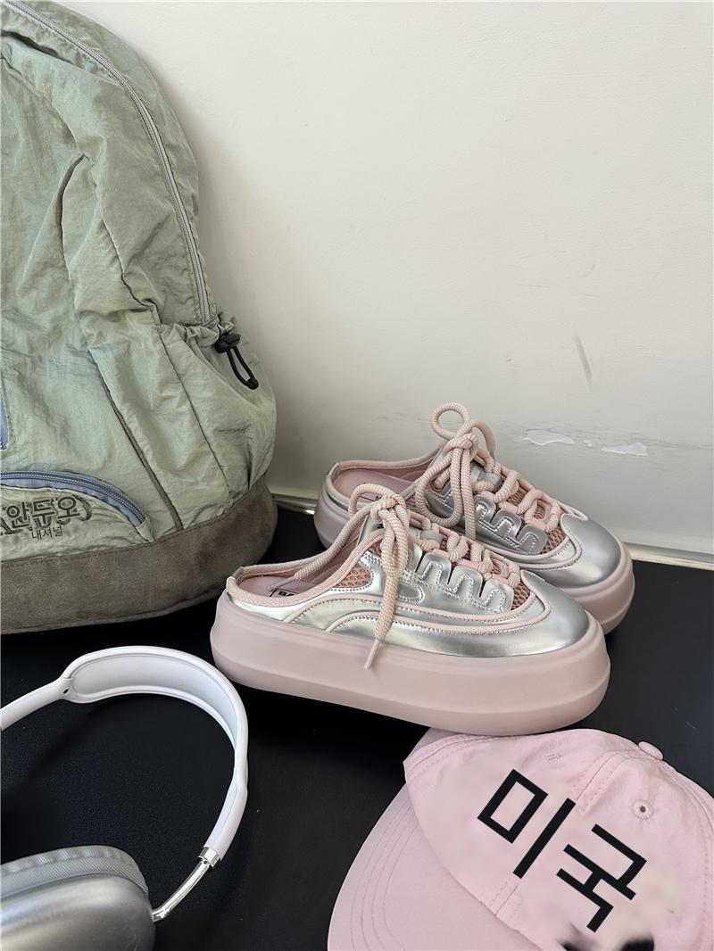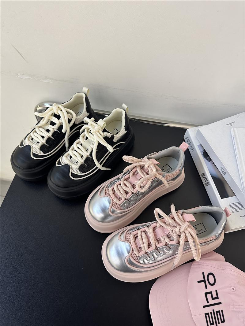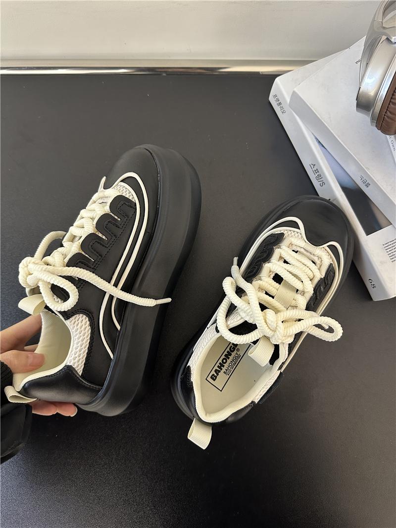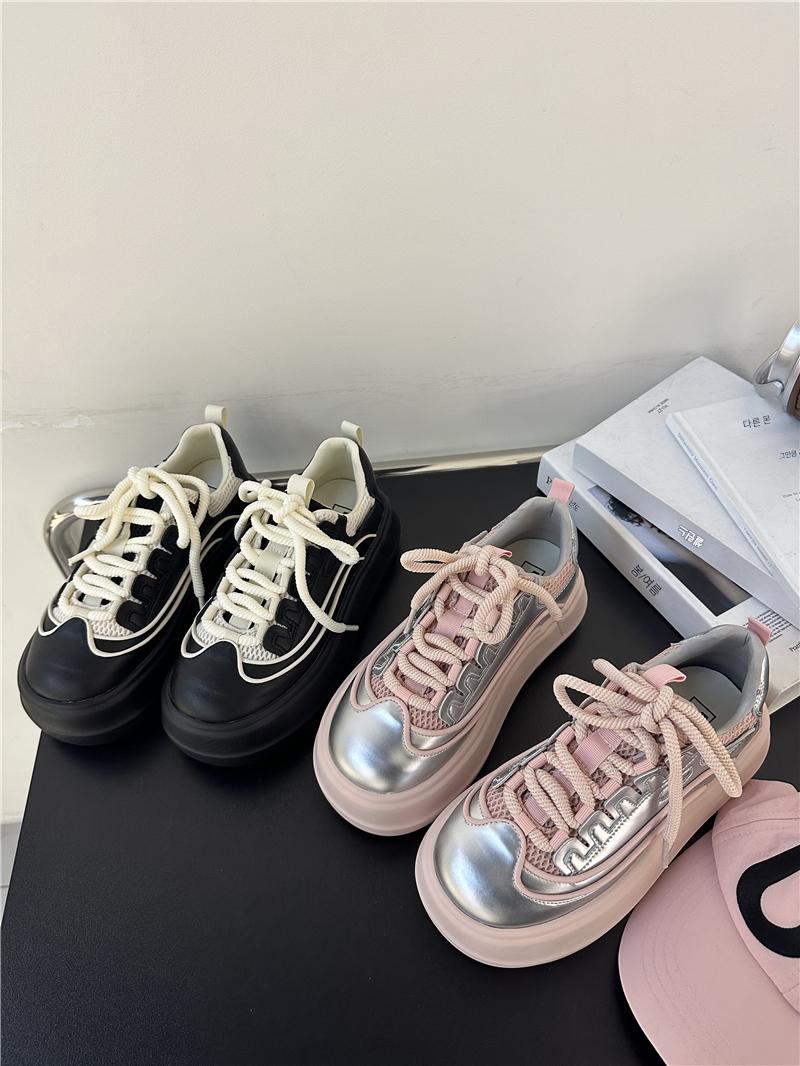 BAHONGLY 여성용 핑크 빵화 2025년 봄 통기성 두꺼운 바닥 가볍고 높이감 있는 못생긴 귀여운 캐주얼 스니커즈