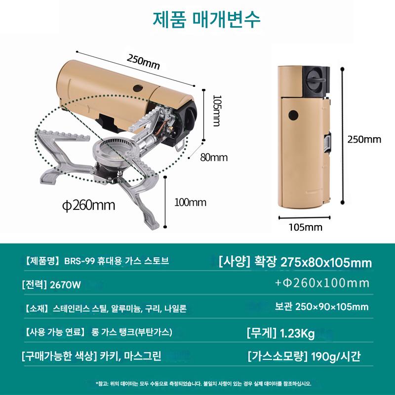 BRS-99 통합 접이식 가스 스토브 야외 휴대용 대용량 화력 방풍 보관 용이 캠핑 피크닉 가스 스토브