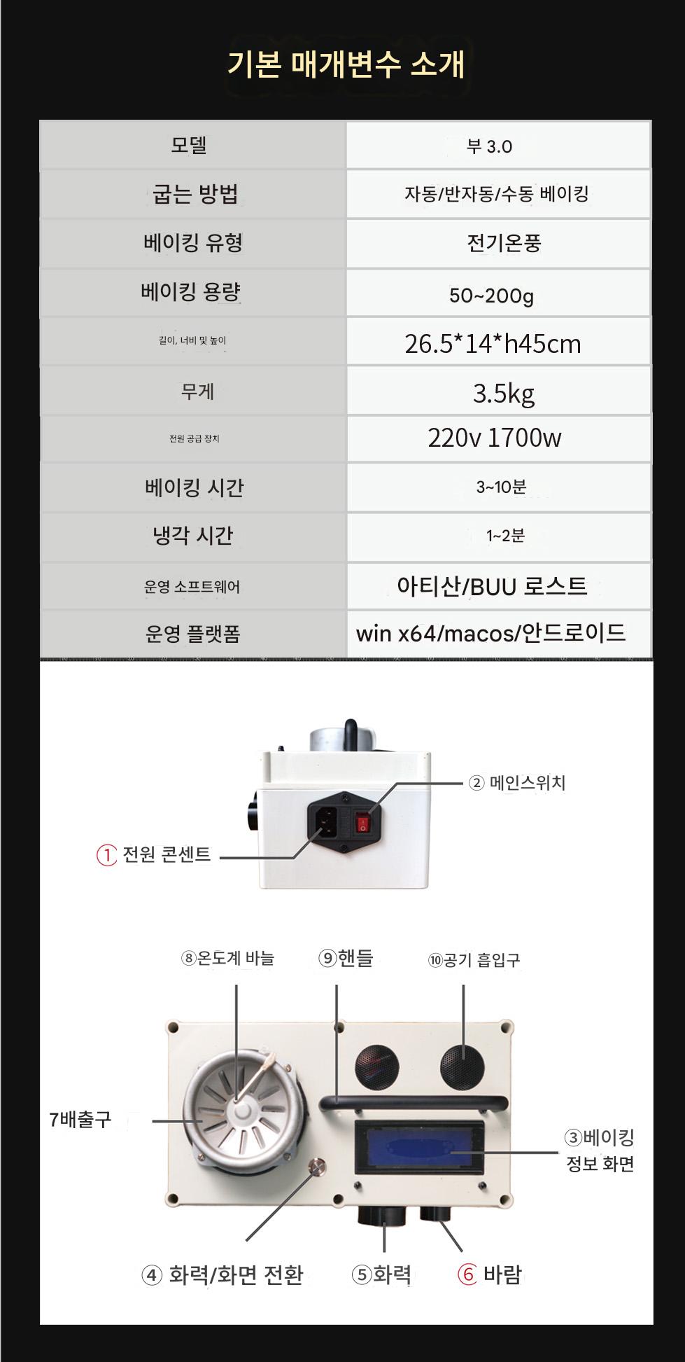 “Buu 3.0 전자동 커피콩 로스터 소형 열풍 커피 로스터 전기기계식 열풍 커피 로스터 Buu”의 첫 상품평을 남겨 주세요