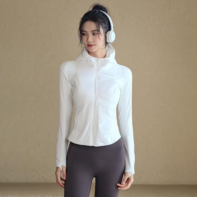 Bylure Plus 벨벳 요가 재킷 여성용 P 코튼 지퍼 후드 코튼 필라테스 트레이닝 수트 화이트 스포츠 상의
