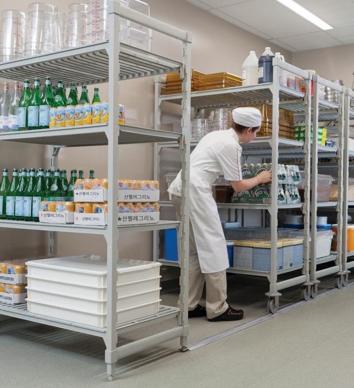 CAMBRO 하이엔드 시리즈 스토리지 랙 고밀도 플로어 레일 모바일 랙은 공간 활용도를 50% 증가시킵니다.
