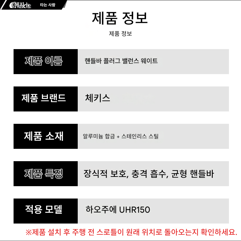 “Chekis 정품 UHR150 개조 핸들바 플러그 핸들바 밸런스 터미널 핸들바 플러그 액세서리에 적합”의 첫 상품평을 남겨 주세요