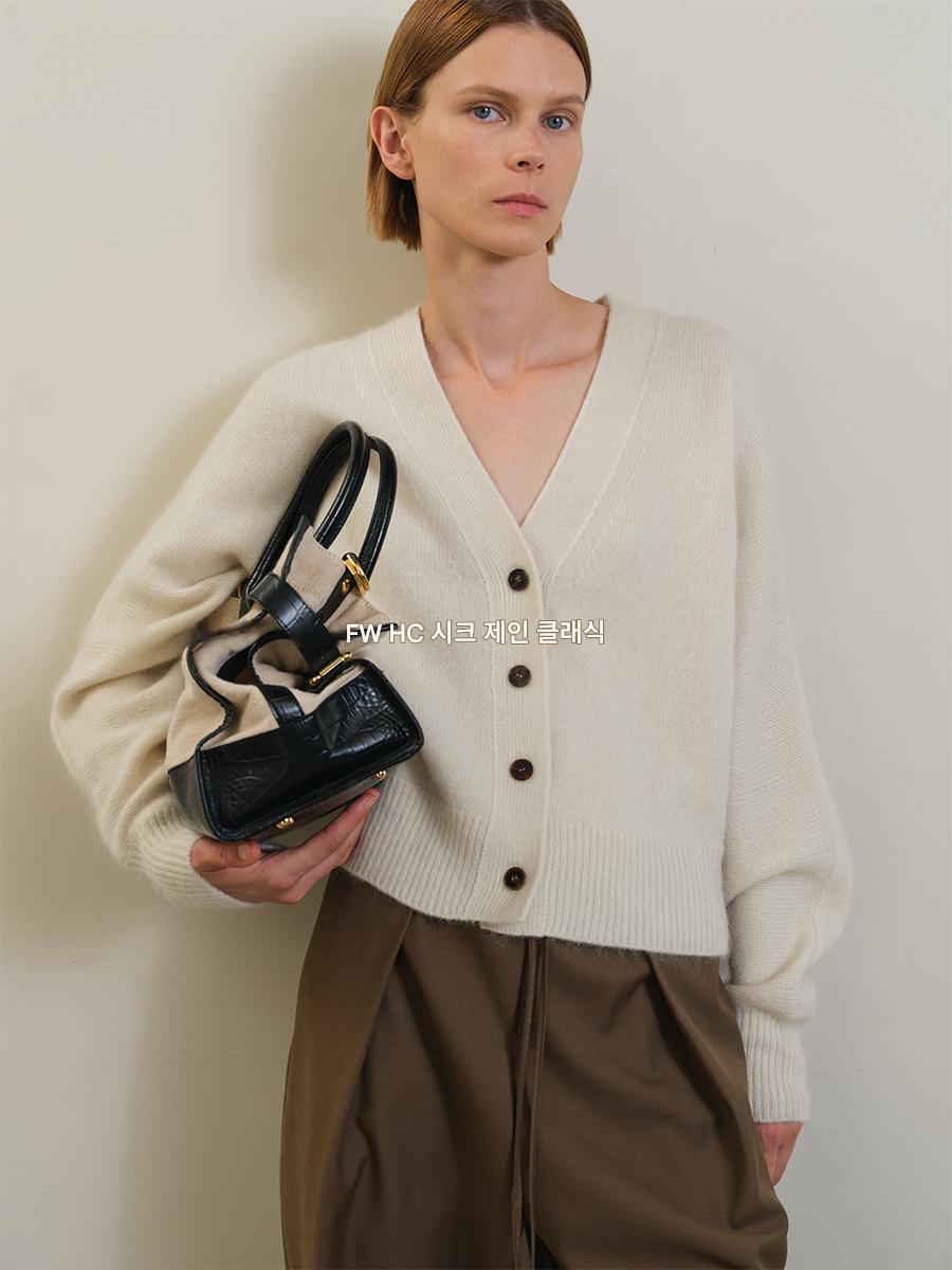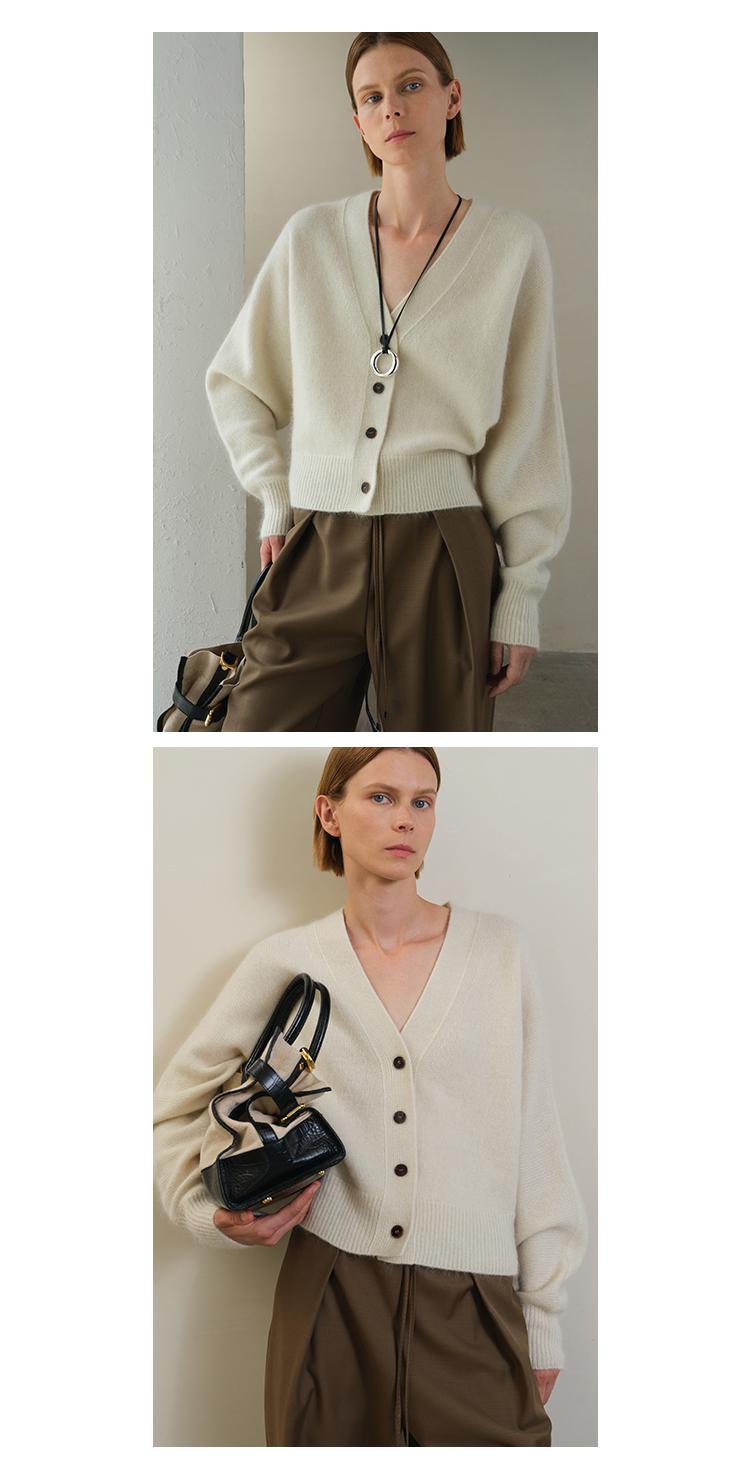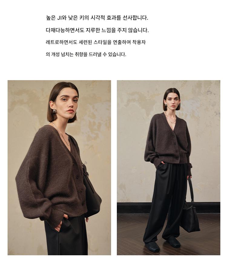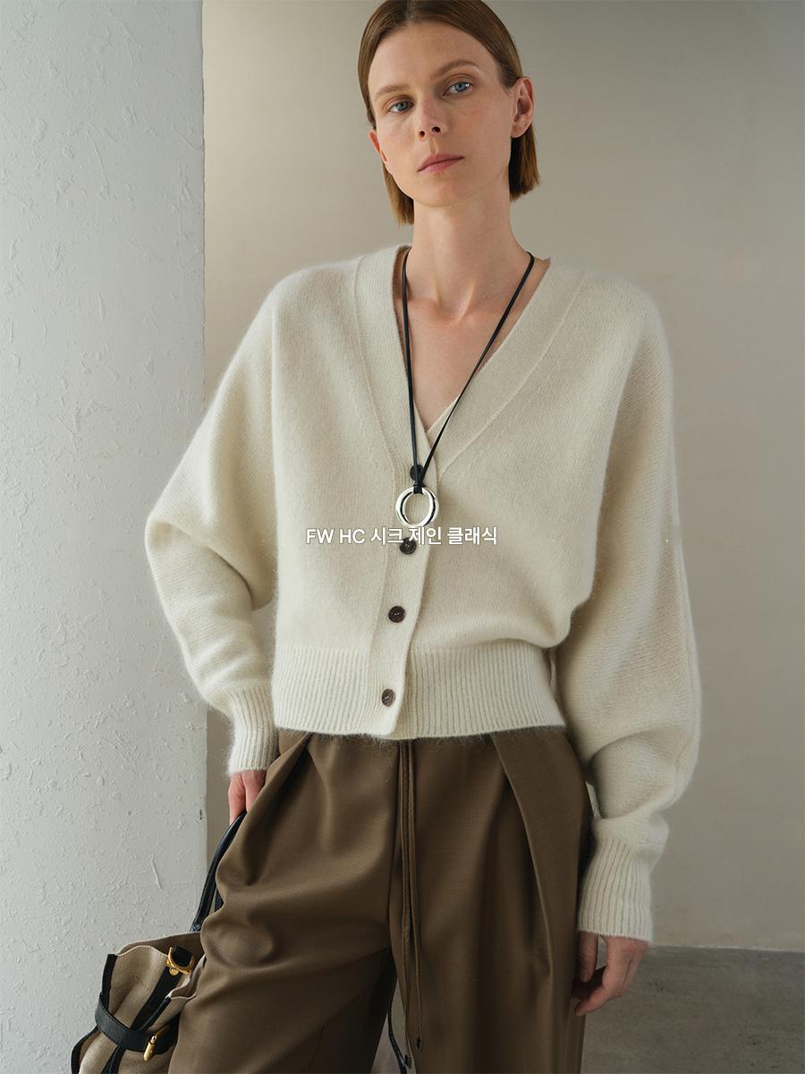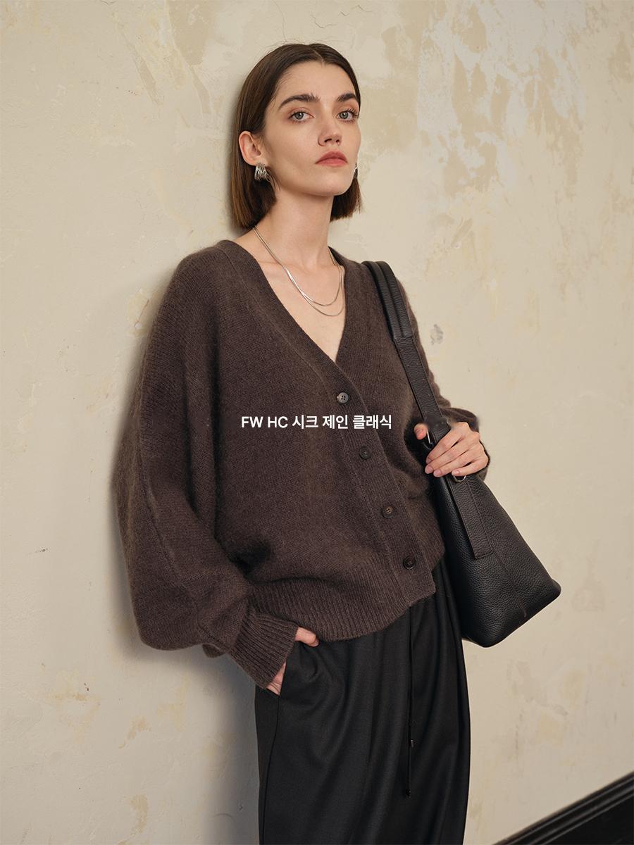 CHICJANE 치 지안/남아프리카 수입 베이비 모헤어 소프트 벨벳 릴렉스 미니멀리스트 커스텀 다이 V넥 카디건