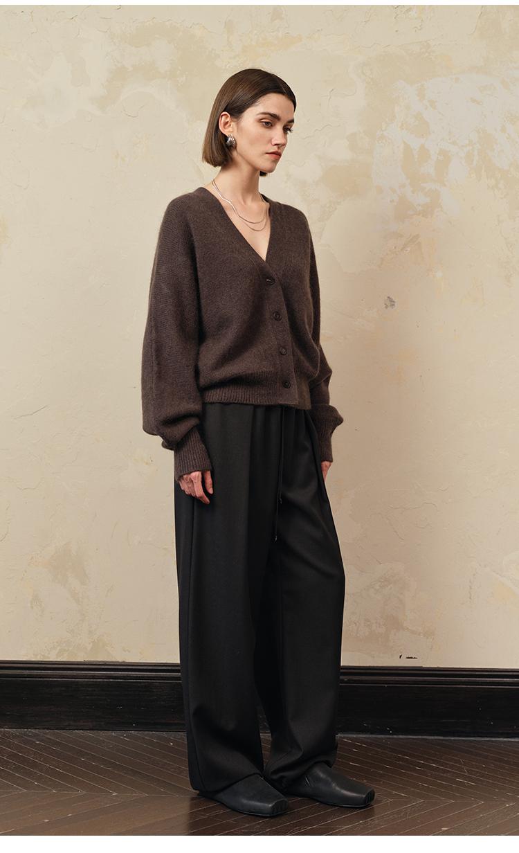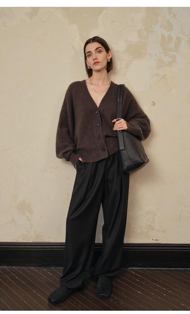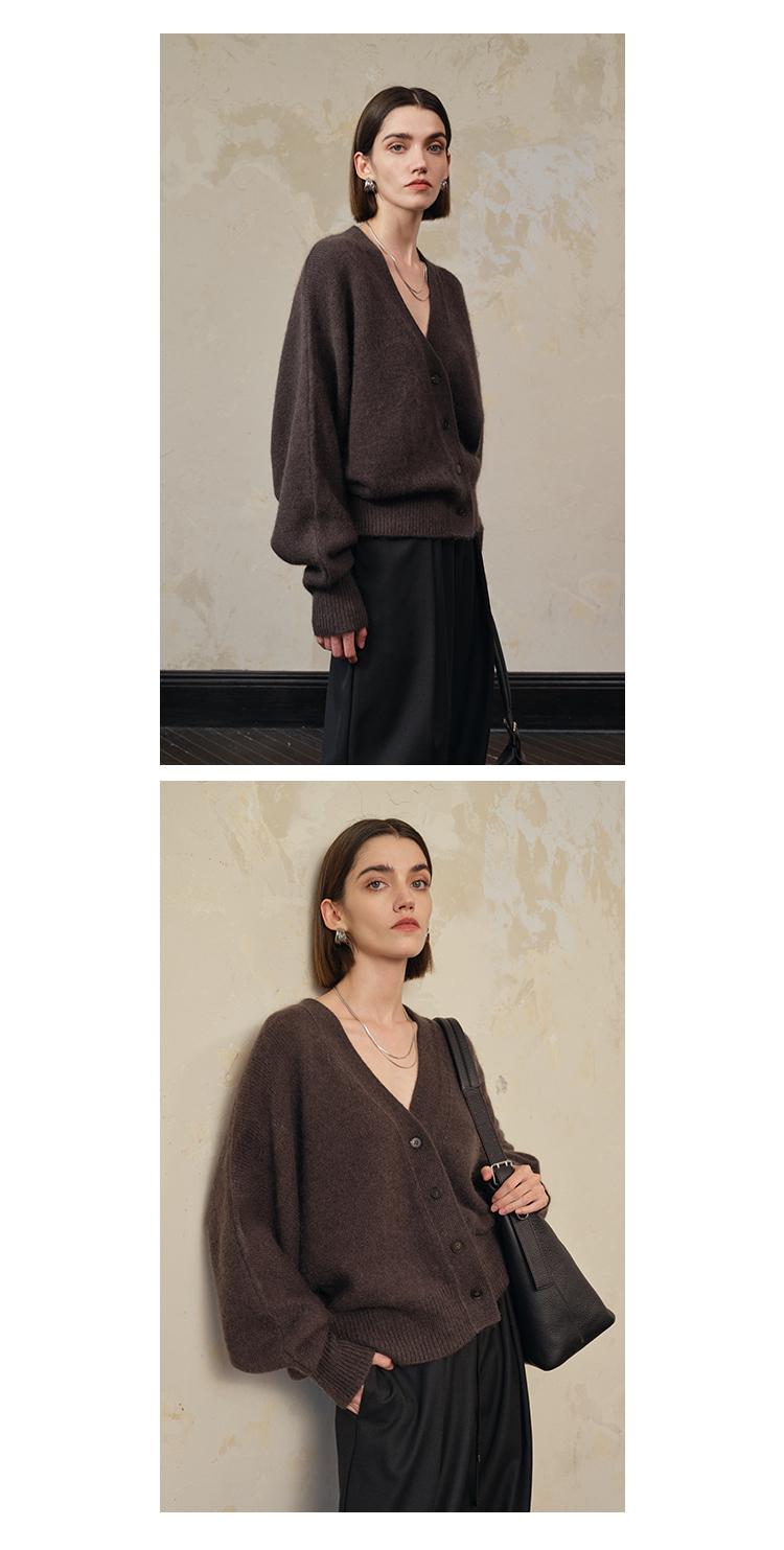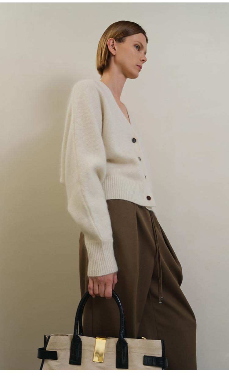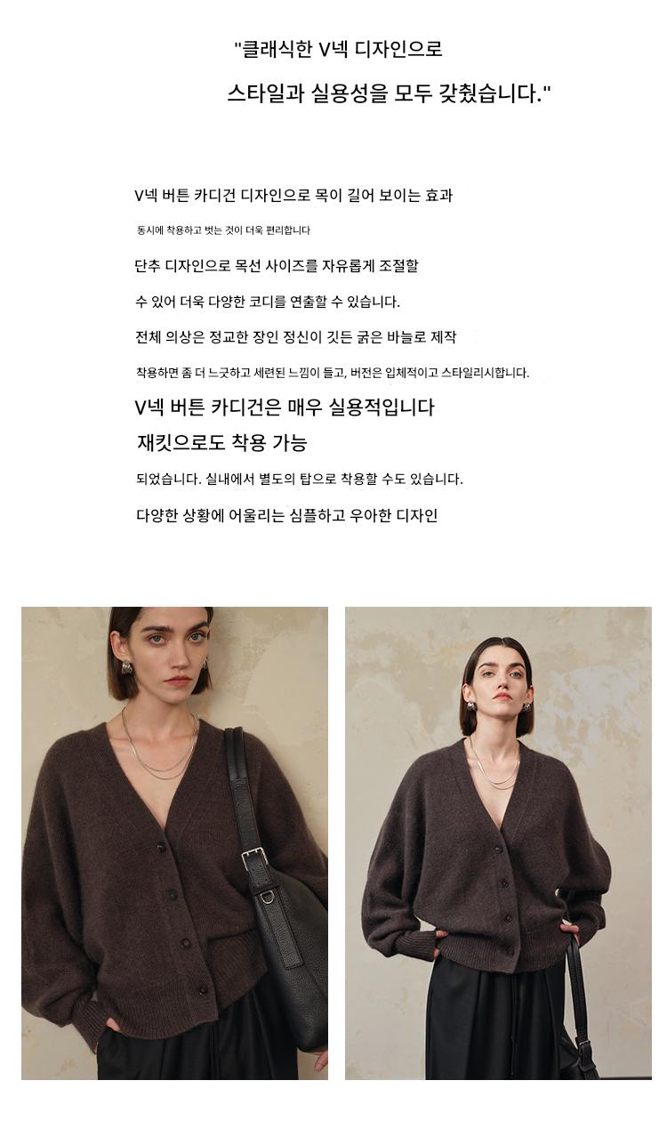 CHICJANE 치 지안/남아프리카 수입 베이비 모헤어 소프트 벨벳 릴렉스 미니멀리스트 커스텀 다이 V넥 카디건