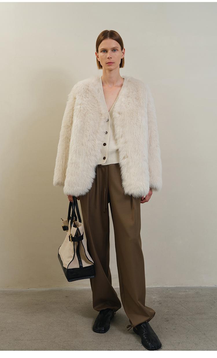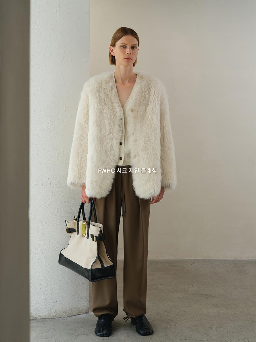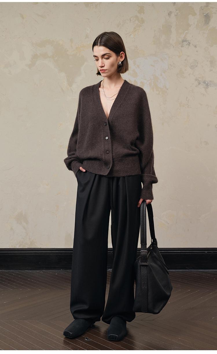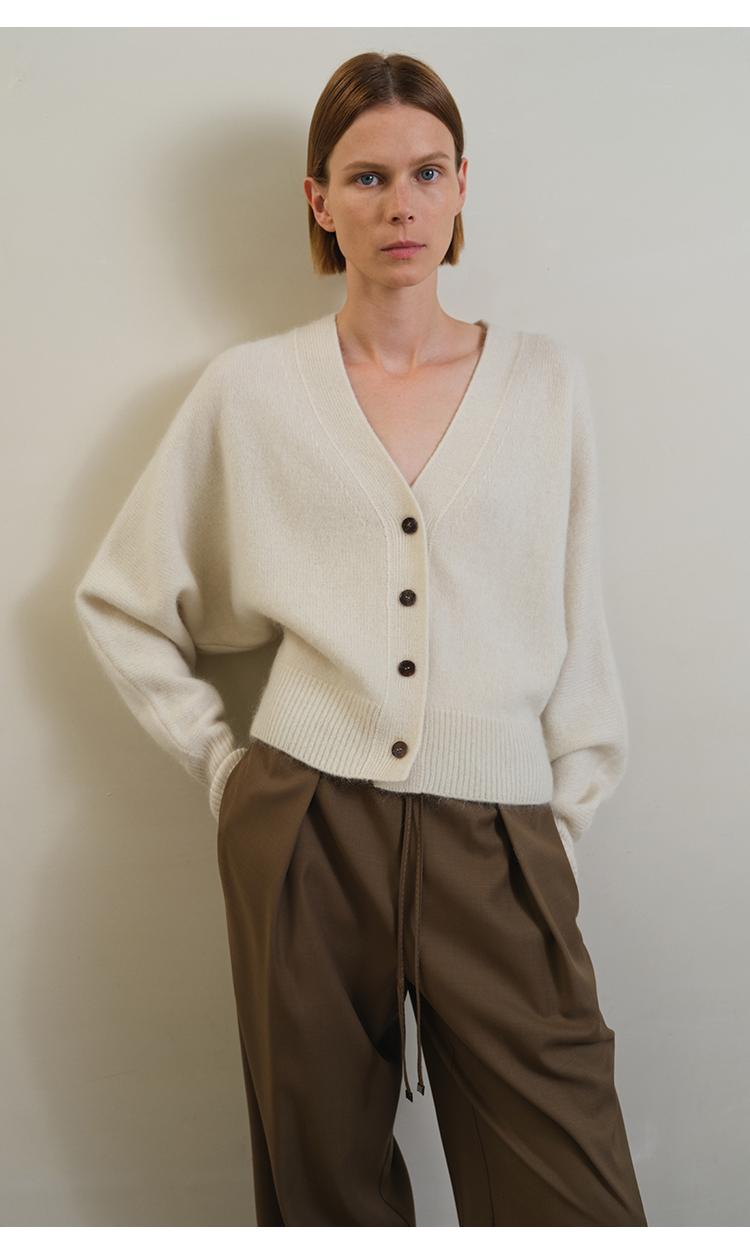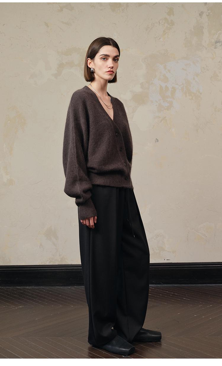 CHICJANE 치 지안/남아프리카 수입 베이비 모헤어 소프트 벨벳 릴렉스 미니멀리스트 커스텀 다이 V넥 카디건