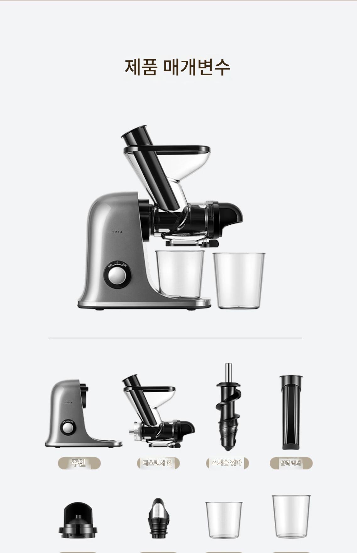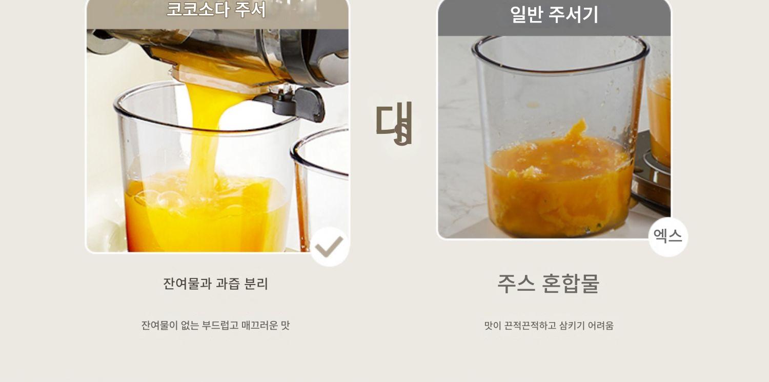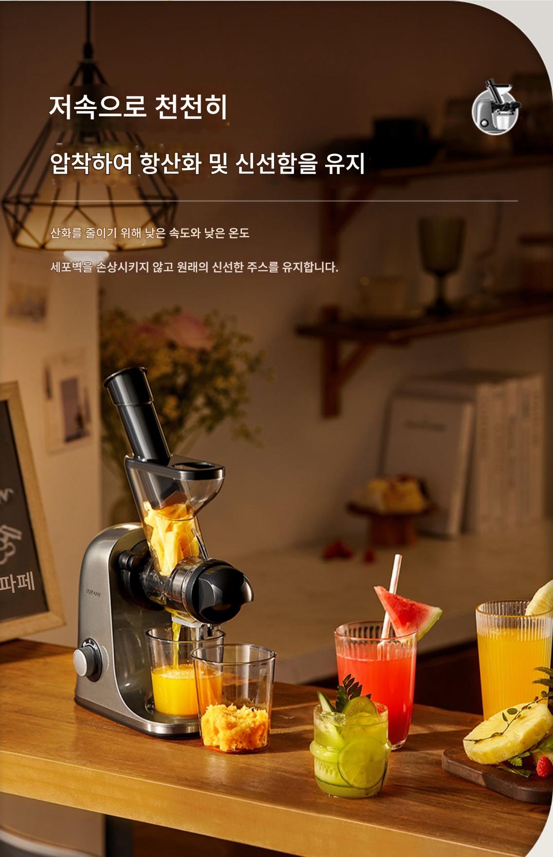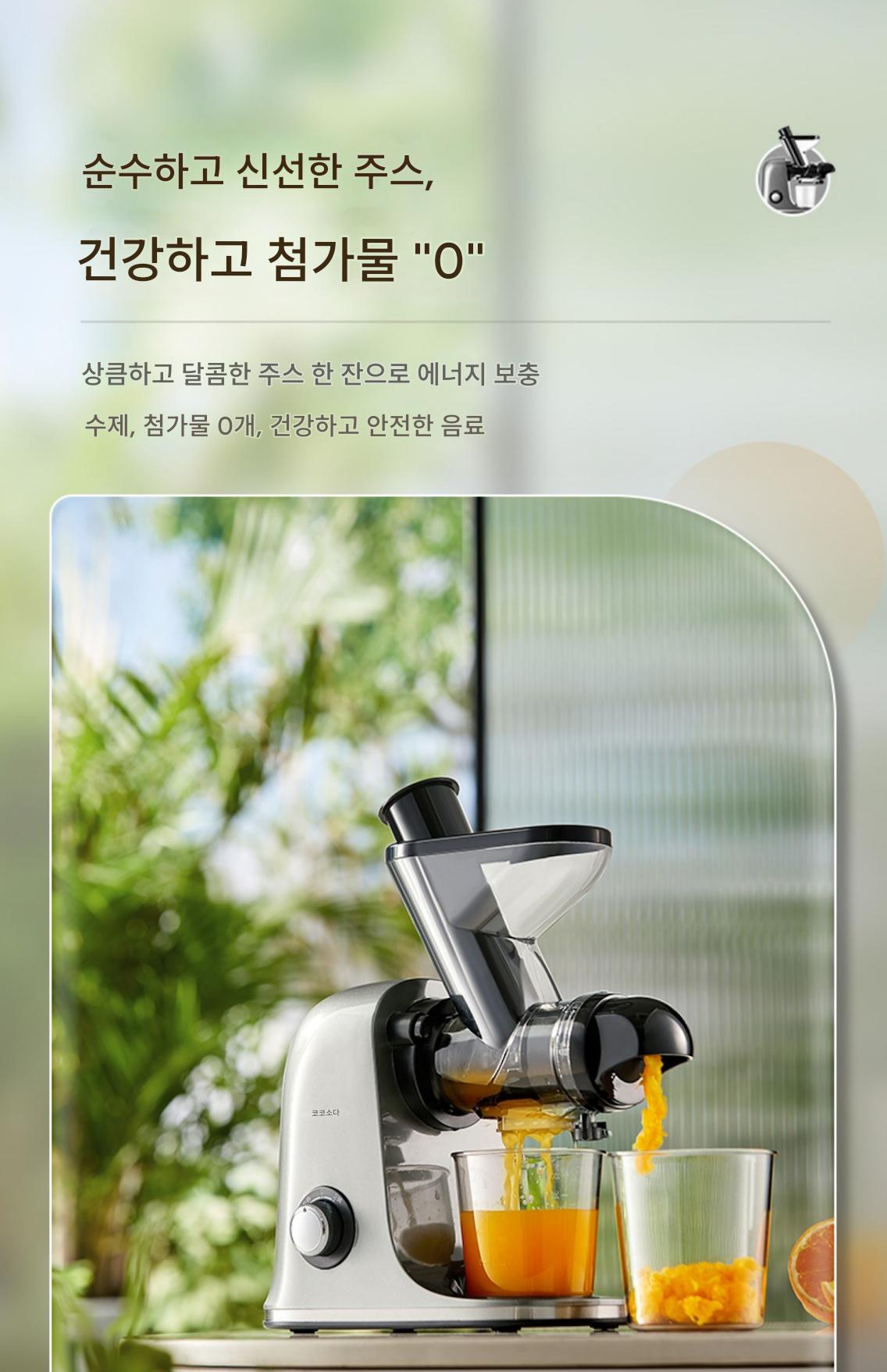 COCOSODA 저속 주서기 주서기 주스 잔여물 분리 가정용 과일 및 채소 소형 자동 슬로우 그라인더 필터 없음
