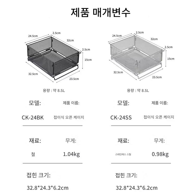 Coman CK24BK 접이식 오픈 메쉬 박스 CK-24SS 주방 식기 IGT 테이블 확장형 야외 캠핑 수납 바구니