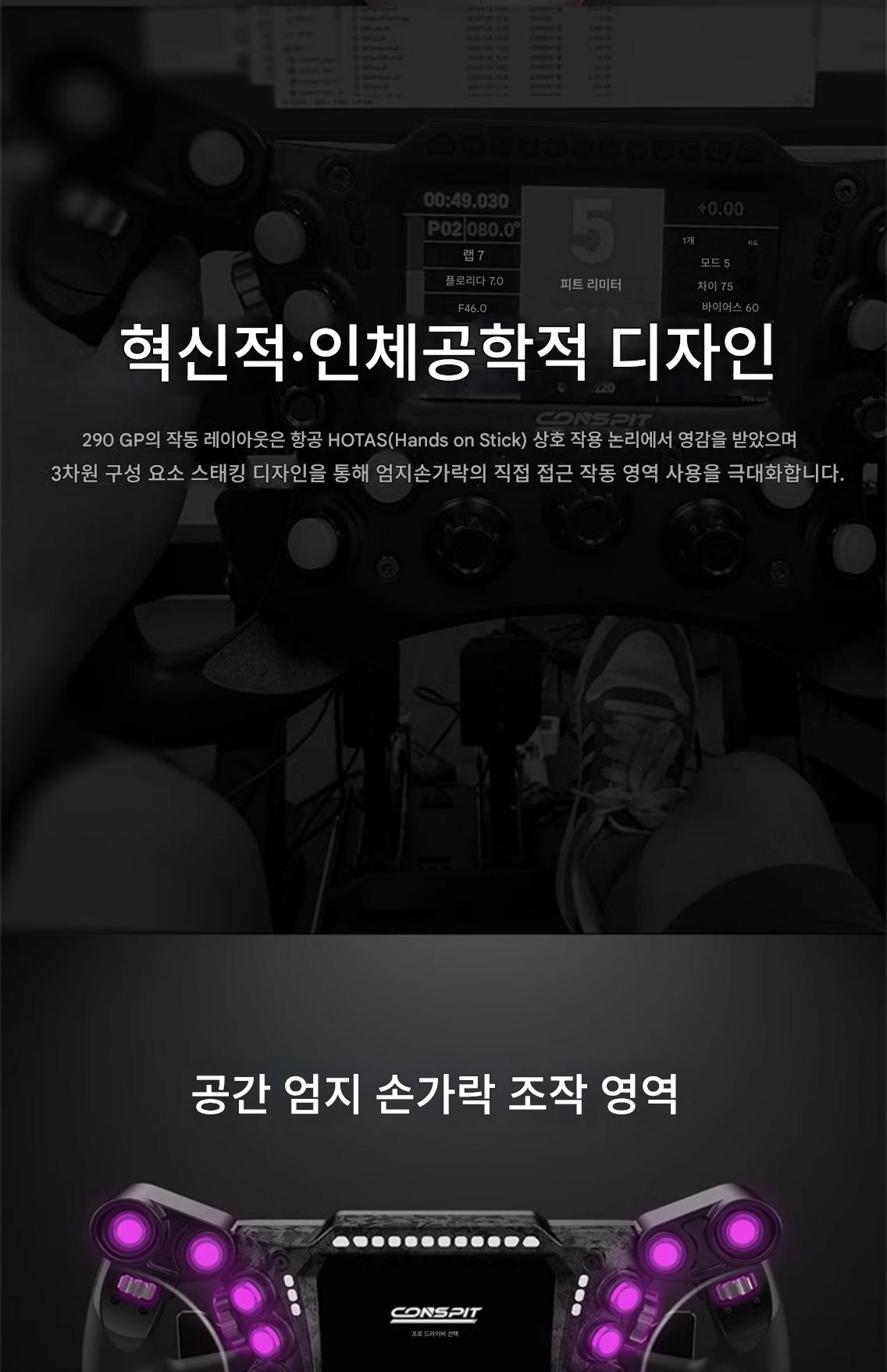 CONSPIT 290GP 단조 탄소 섬유 레이싱 시뮬레이터 포스 피드백 스티어링 휠 F1 동일 패들