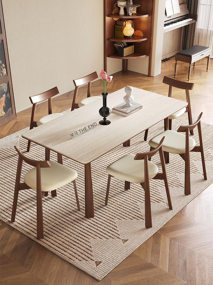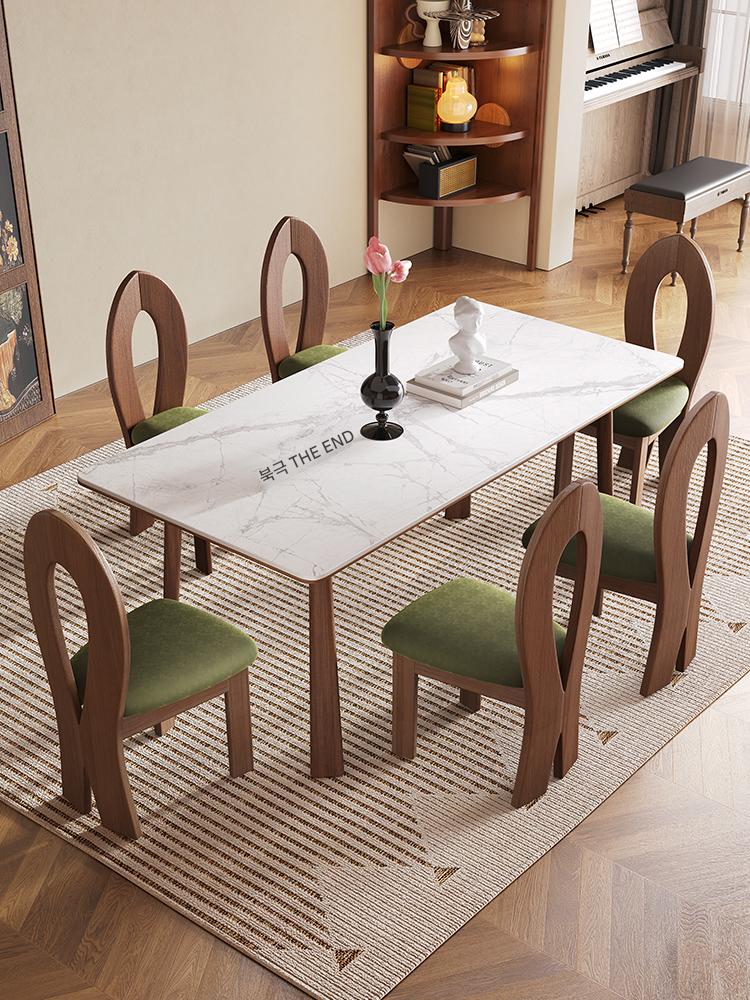 Delifeng 록보드 견고한 나무 식탁 프랑스 미국 2025년 신형 중세 풍동 돌 직사각형 가족 소형 아파트