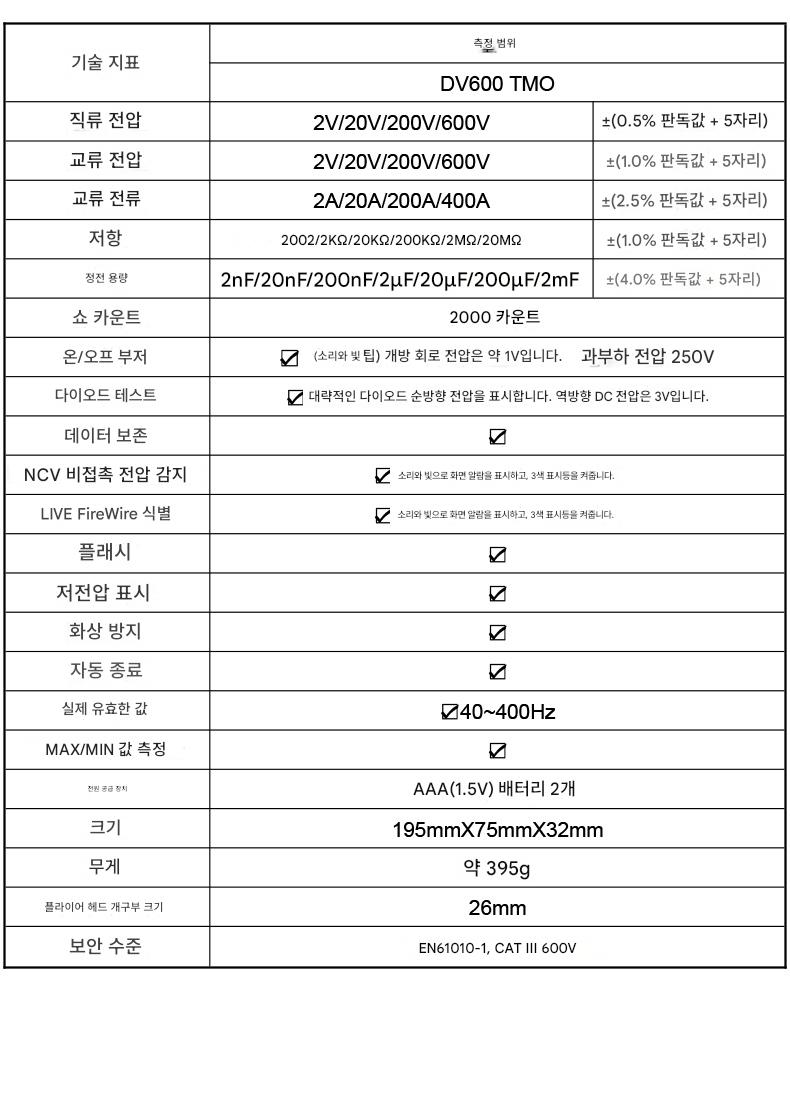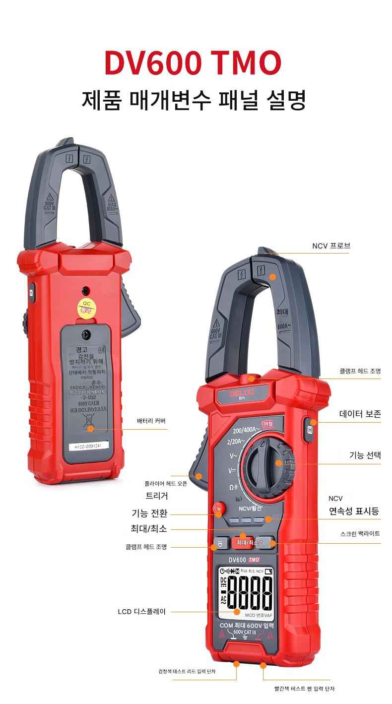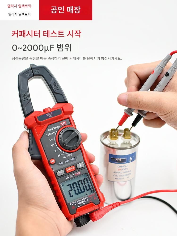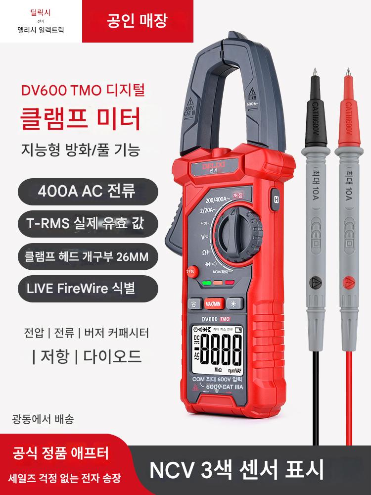 Delixi 전기 클램프 멀티미터 고정밀 디지털 클램프 미터 지능형 화상 방지 AC 및 DC 전류 테스트 V600