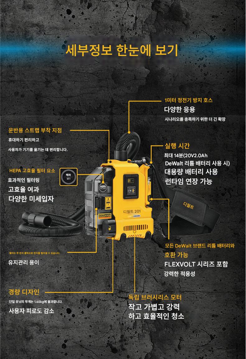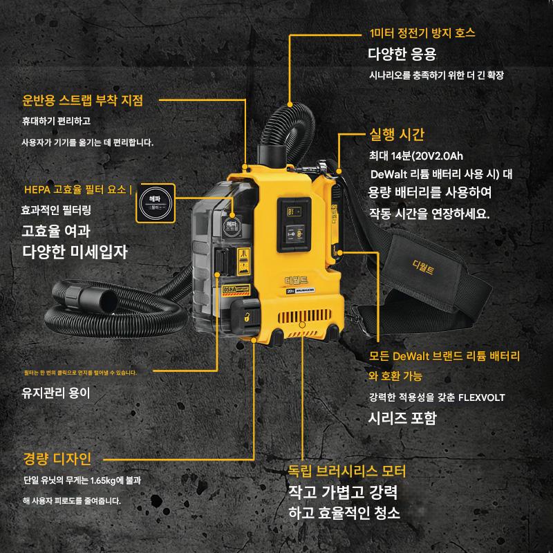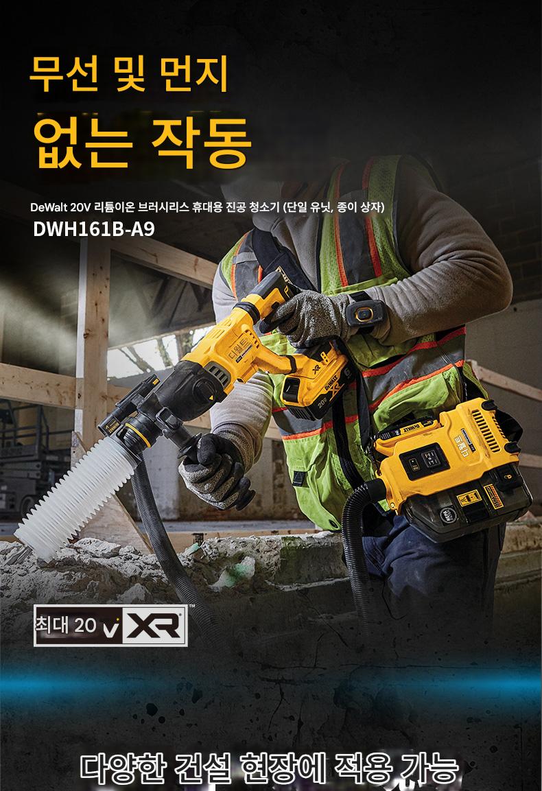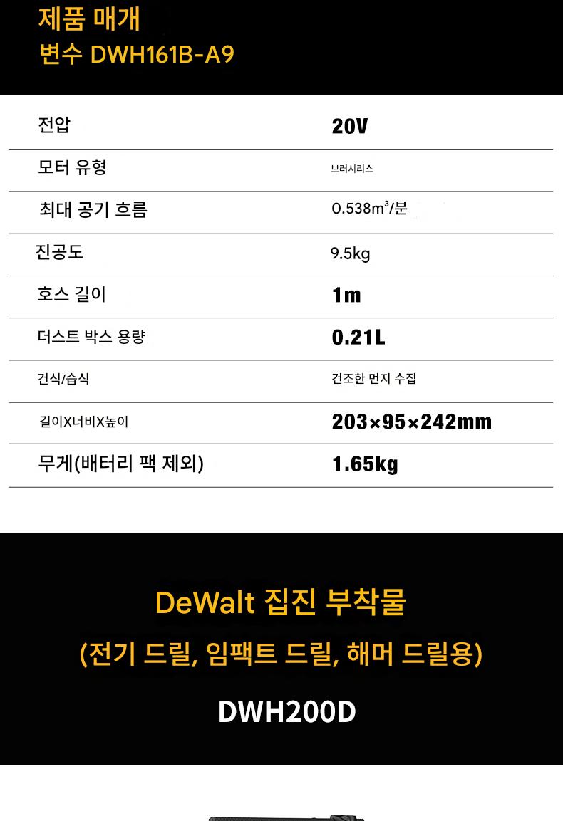 DeWalt 20V 충전식 휴대용 진공 청소기 DWH161/DWH200D 브러시리스 집진기 전기 드릴 해머