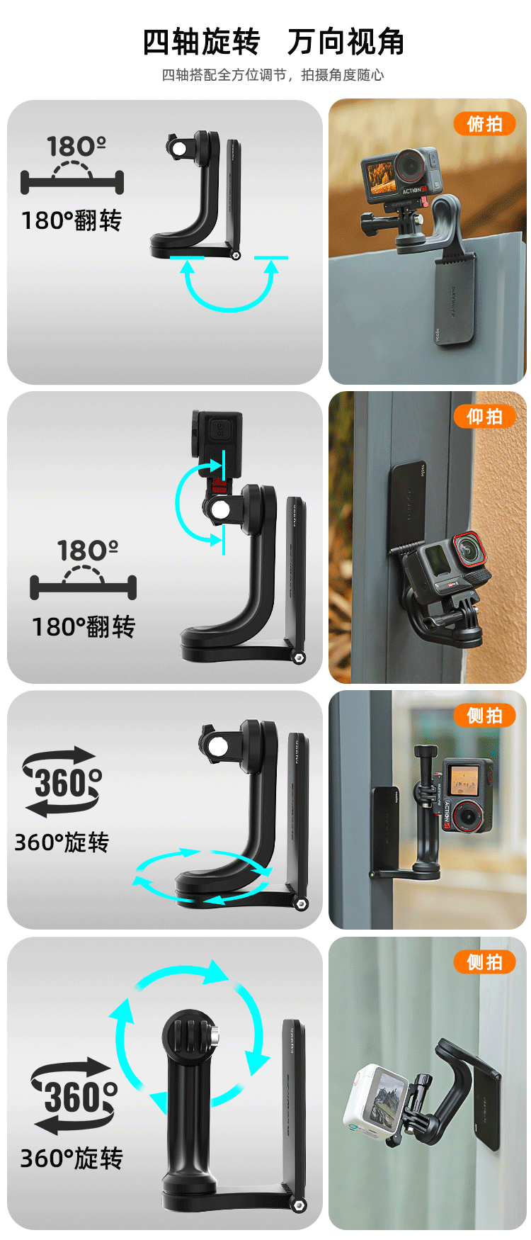 DJI Pocket3/Action5/360 X5 액션 카메라용 다축 회전 자석 브래킷