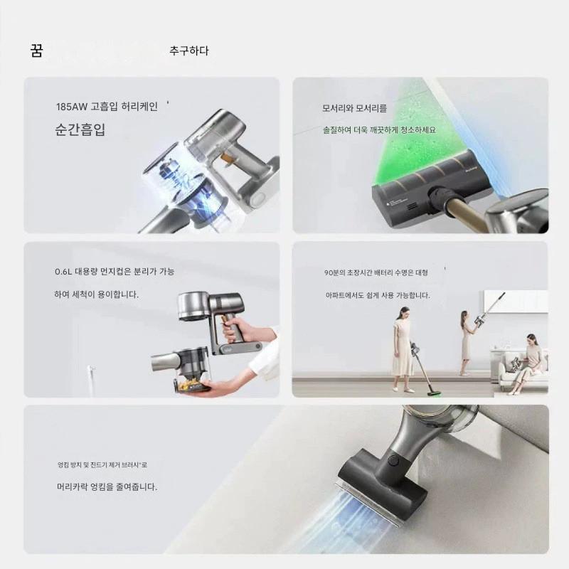 Dreame Chase V12S 가정용 무선 핸드헬드 진공 청소기 185AW 대용량 흡입력 90% 장수명 홈 그린라이트