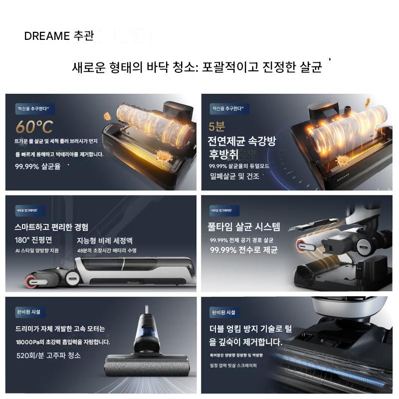 Dreame H30 Ultra Rotary Edition 무선 눕혀서 사용 가능한 온수 바닥 세척기 진공 청소기 자동 세척 기능 고온 건조기