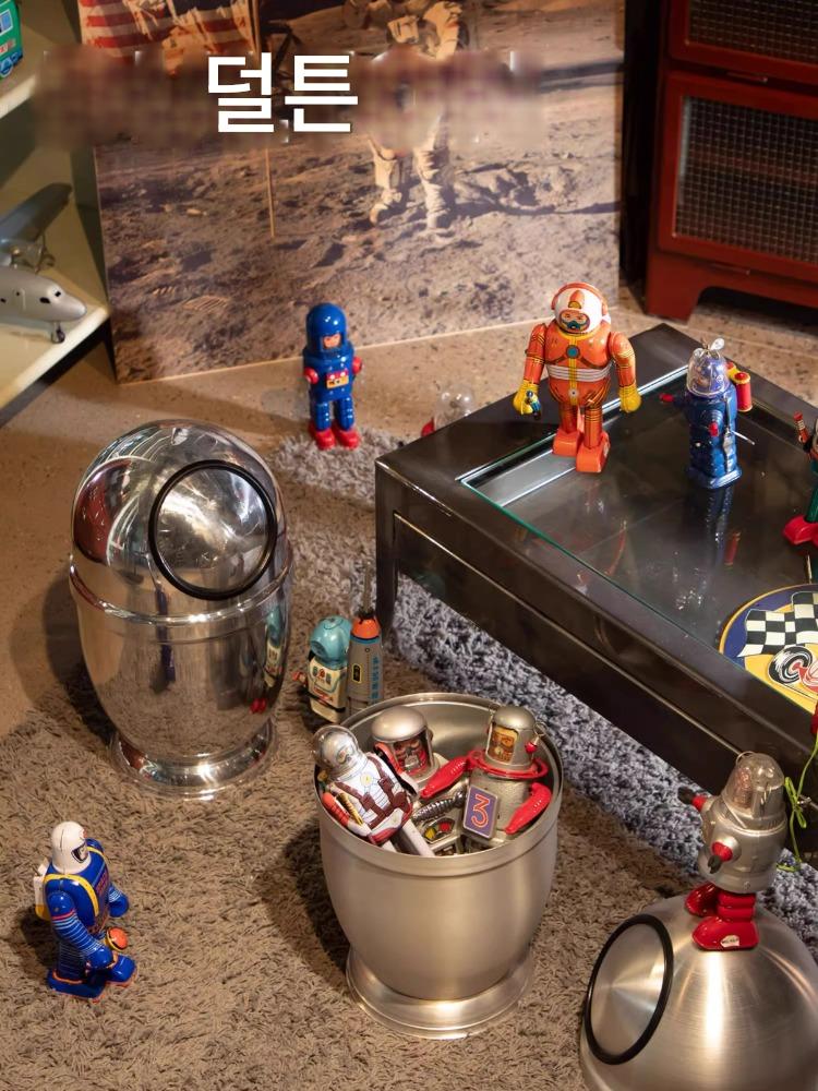 DULTON 금속 알루미늄 쓰레기통 원형 심플 크리에이티브 2중 레이어 산업 스타일 보관함