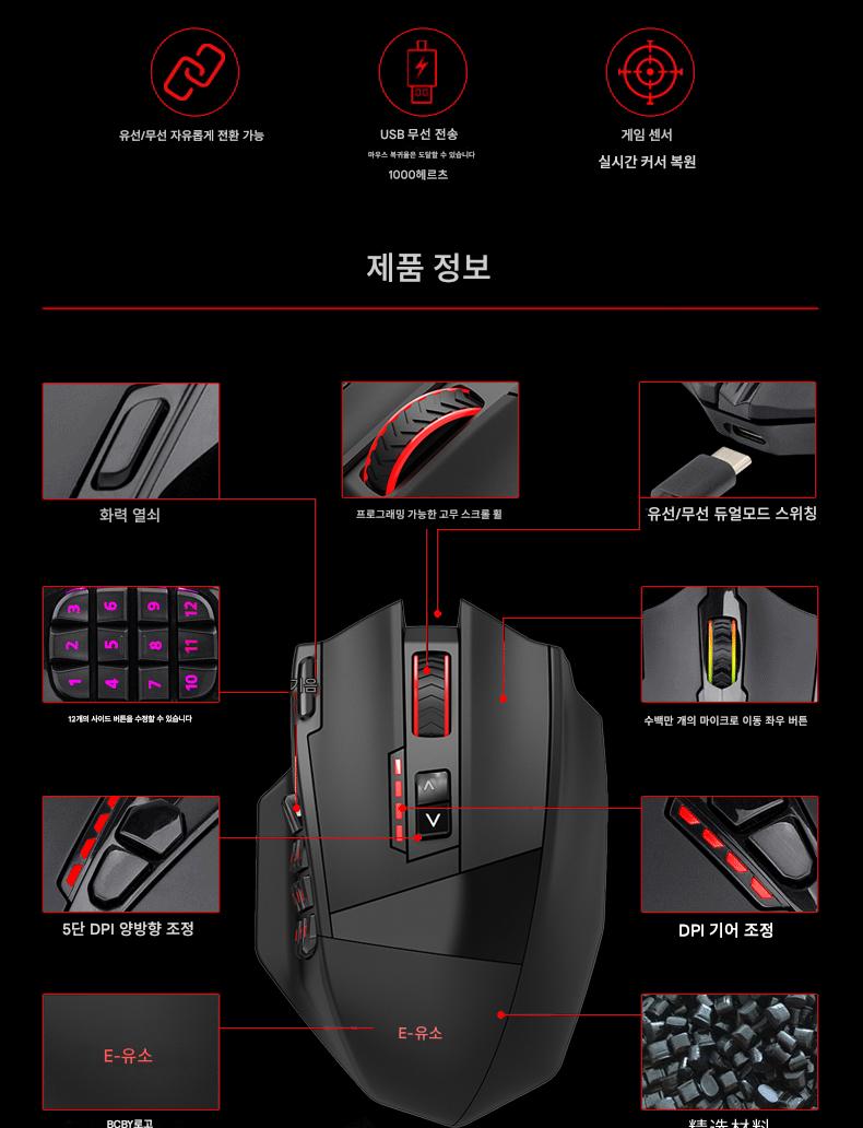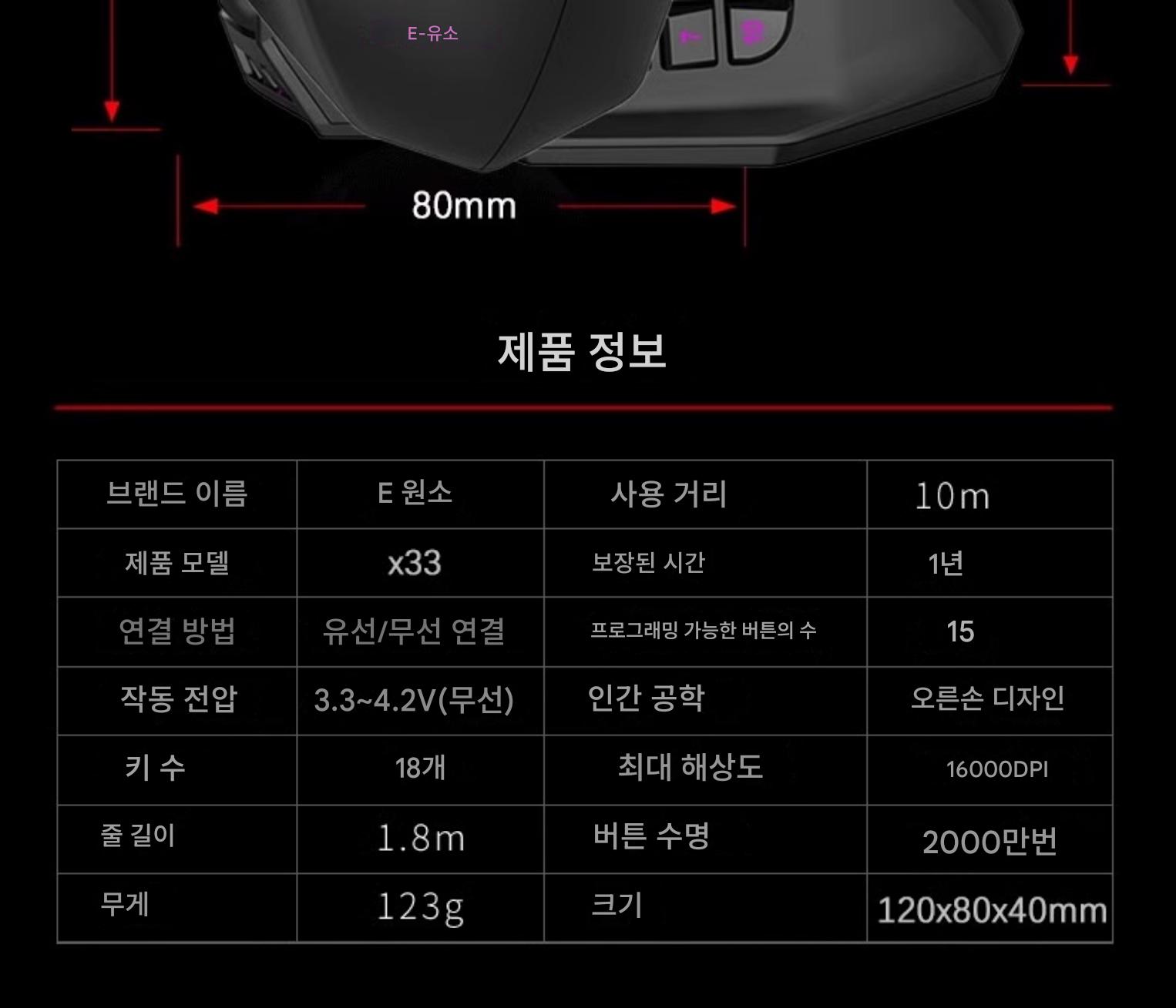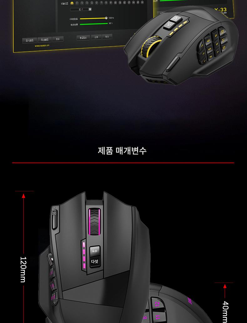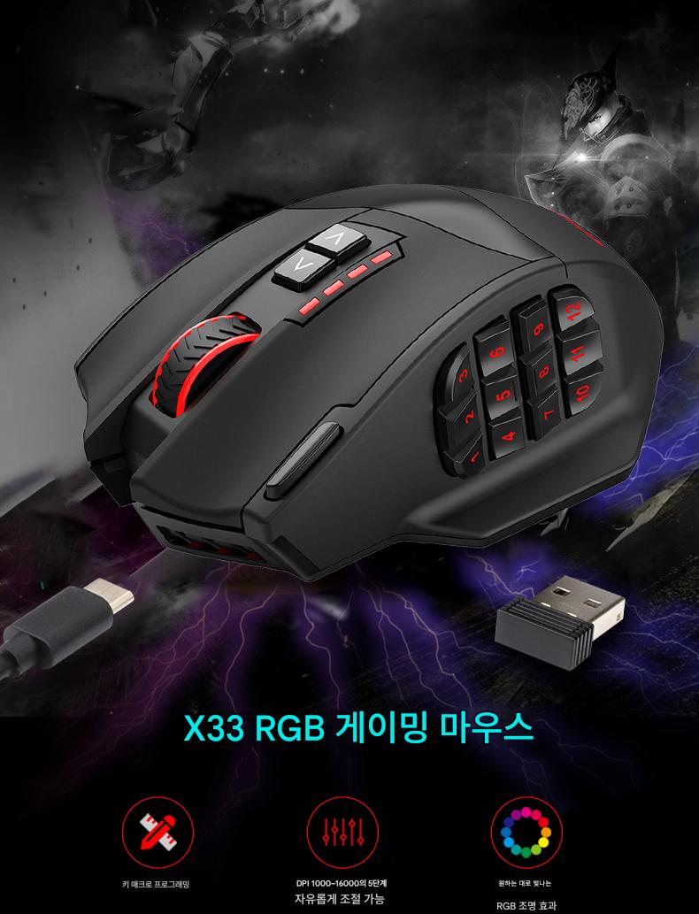 e-element X-33 무선 유선 듀얼모드 멀티버튼 게이밍 마우스 매크로 프로그래밍 충전식 오피스 게이밍 마우스