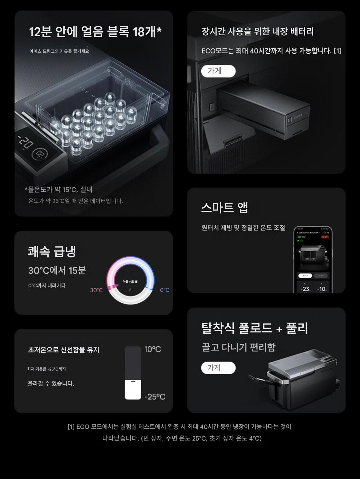 ECOFLOW 정호 38L 대용량 냉동고 보관함 가정용 실외 차량용 스마트 제빙기