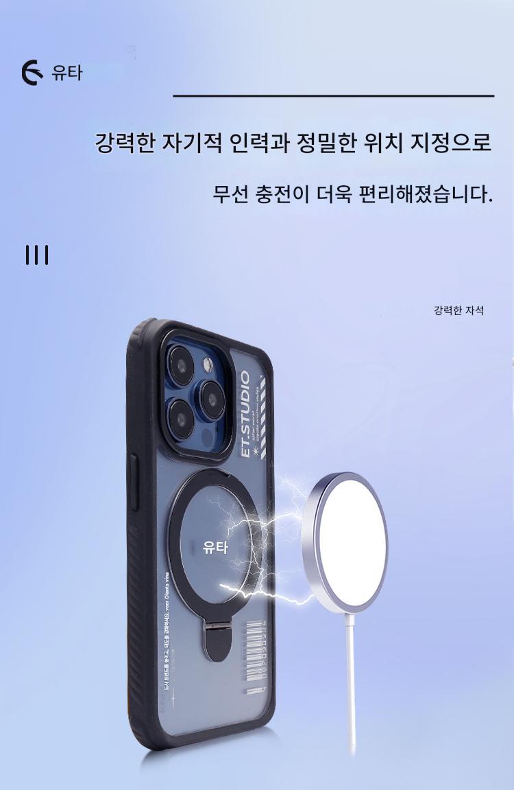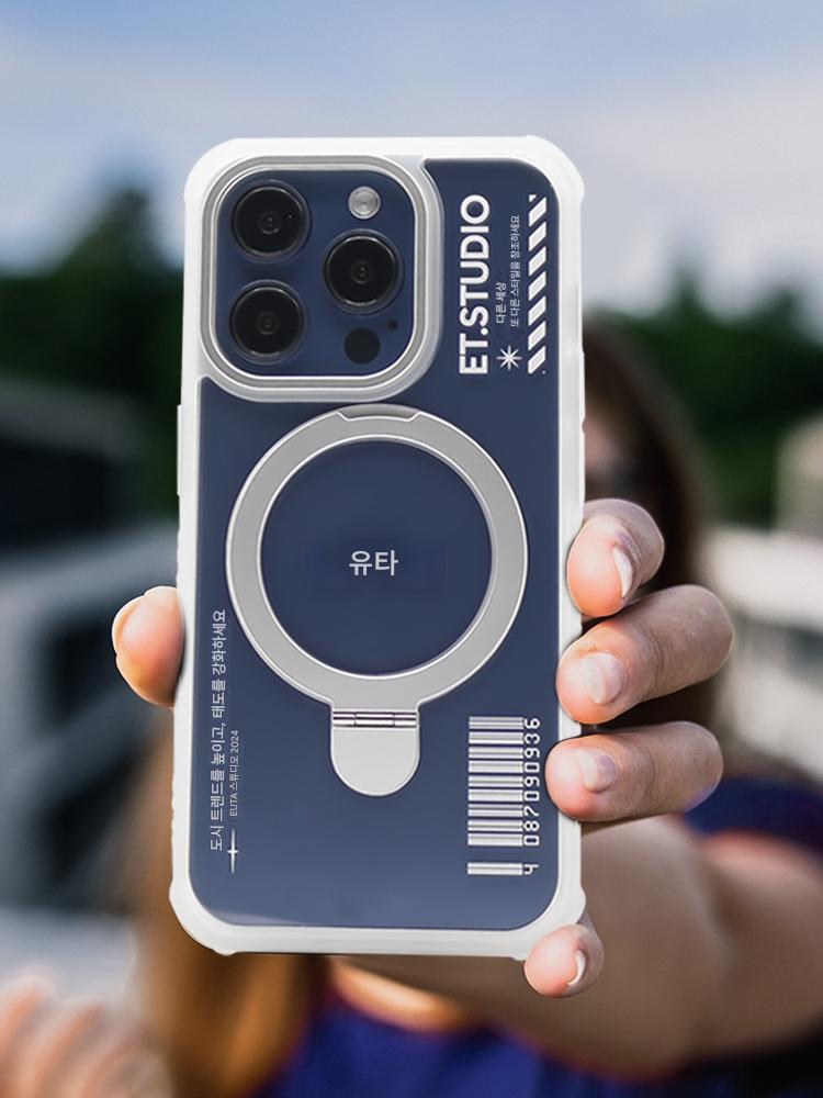 EUTA는 Apple 15promax 모바일 폰 케이스 2023 새로운 iPhone16Promax 단순 투명 고급 magesafe 자기 충전 보이지 않는 브래킷 낙하 방지 전체 가장자리 조수에 적합합니다.
