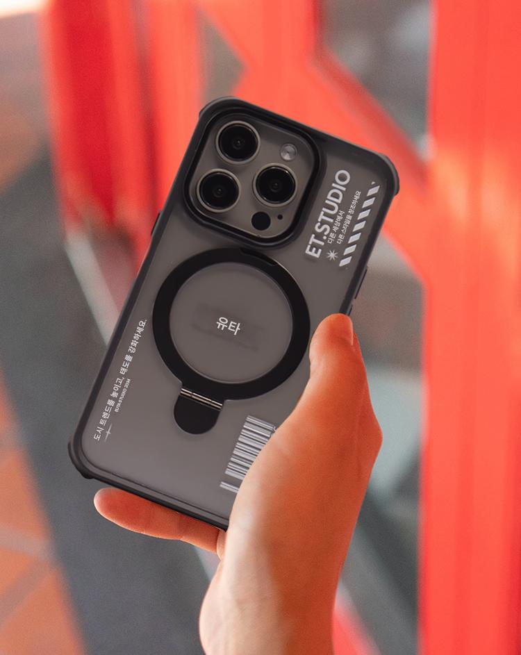 iPhone 15 Pro > magesafe磁吸充电支架款-透明黑