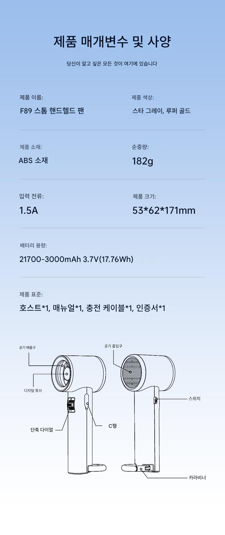 FARADAY Faraday 핸드헬드 팬 고풍량 다이얼 등산 버클 디지털 디스플레이 100단 기어 에너지 절약 고속 팬