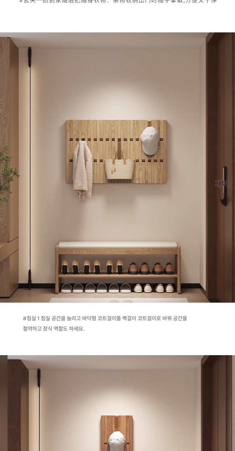 FAS 등급 애쉬 우드 피아노 키 옷걸이 현관 견고한 나무 벽걸이 침실 공간 절약 현관 보관 옷걸이