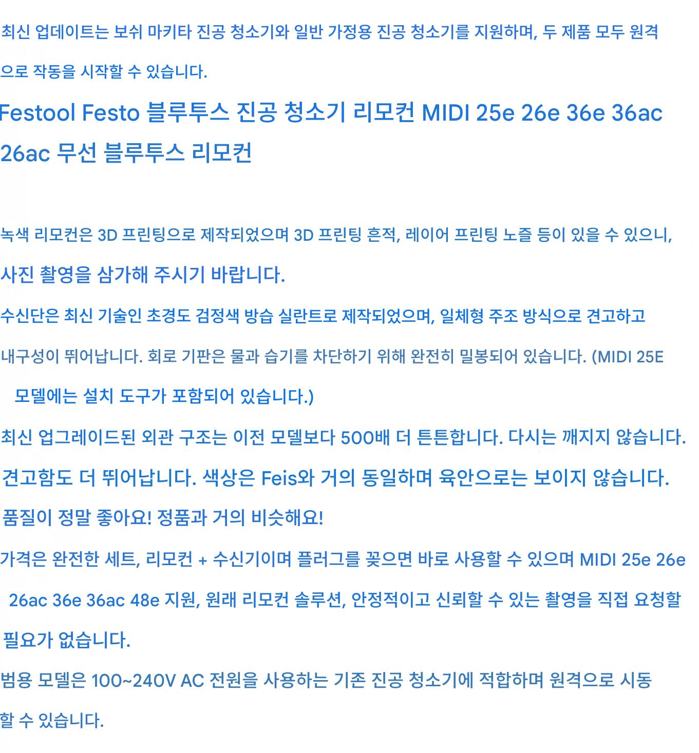 “Festool MIDI Festo 진공 청소기 무선 리모컨 Bluetooth 원격 제어 진공 청소기 무선 리모컨 시작”의 첫 상품평을 남겨 주세요
