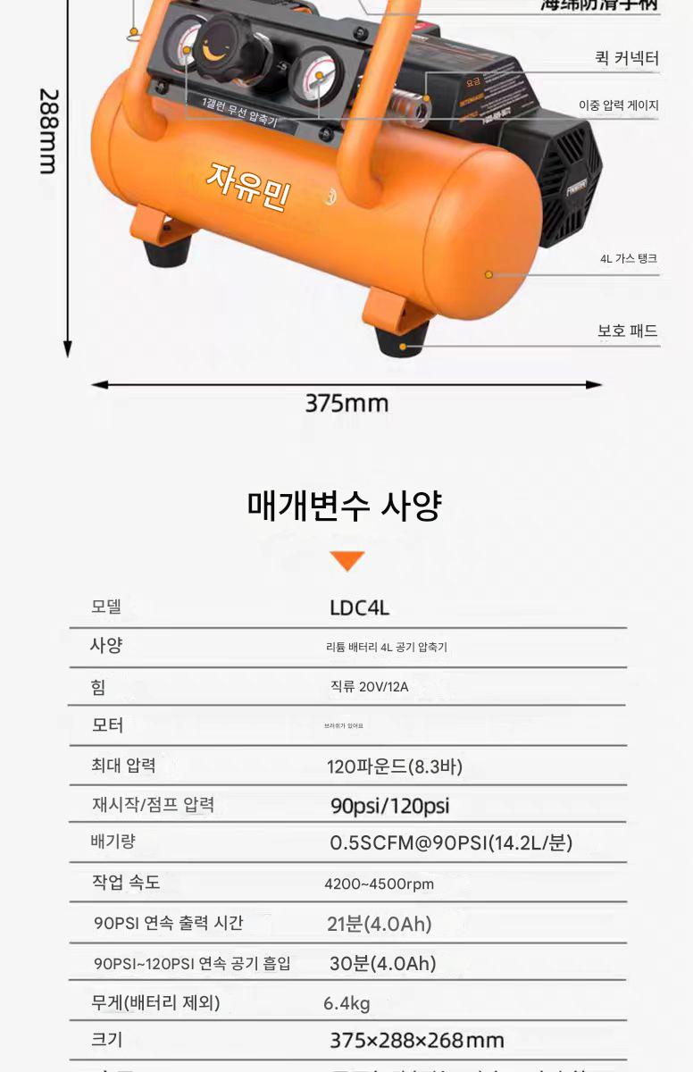 FREEMAN Fulimen 충전식 공기 압축기 4리터 리튬 휴대용 10리터 소형 공기 펌프 전기 공기 압축기
