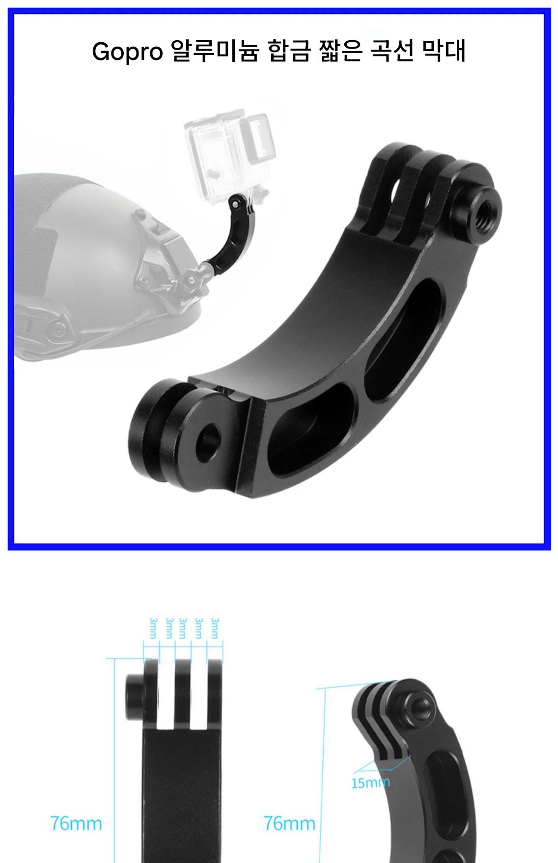 Gopro 알루미늄 합금 연장 막대 DJI 스포츠 카메라 헬멧 짧은 곡선 막대 헬멧 확장 암 브라켓에 적합