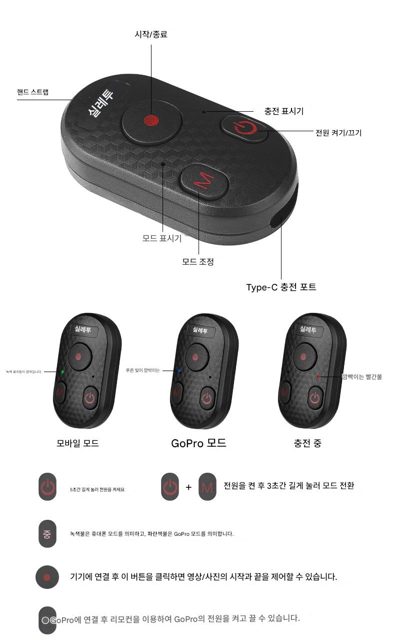 gopro8/9/10/1112 스포츠 카메라 리모컨 충전 블루투스 셀카 장치 무선 사진 촬영 액세서리