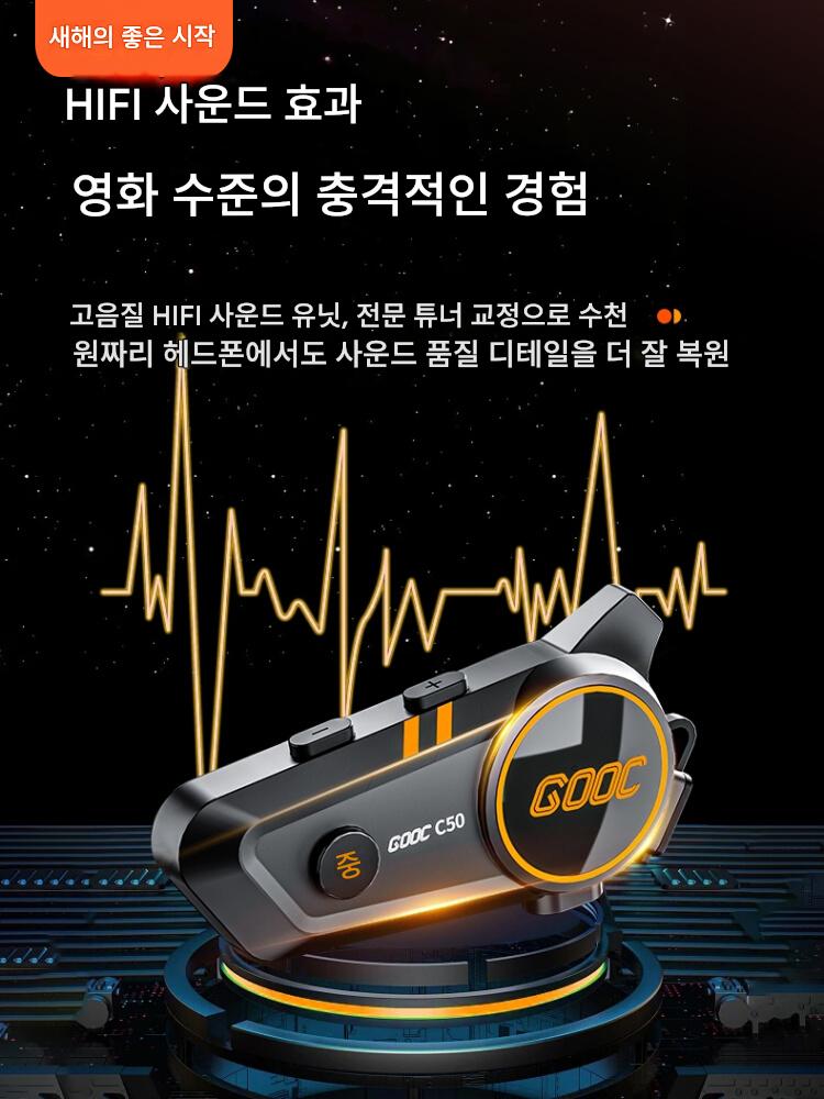 Hengjiang-C50 헤비베이스 모터사이클 헬멧 블루투스 헤드셋 방수 소음 감소 장시간 지속 MESH 다중인용 인터컴 전용