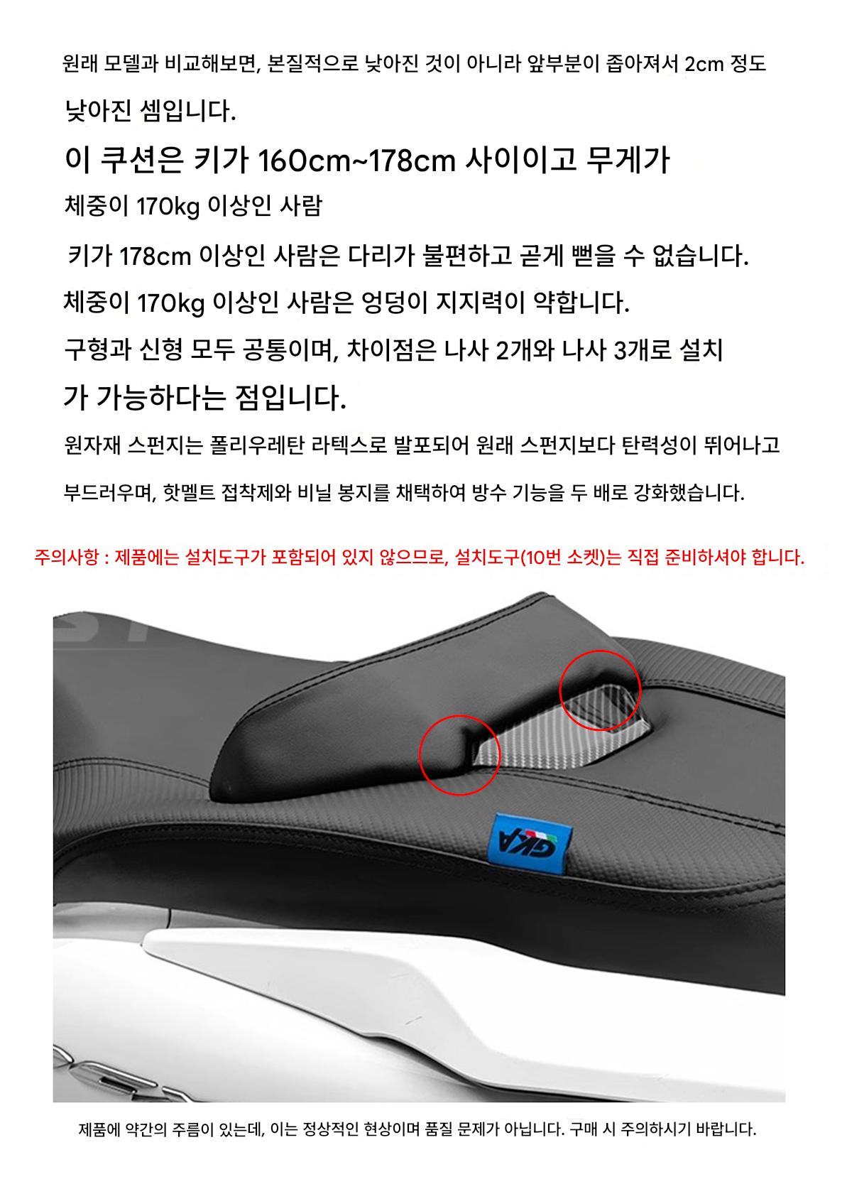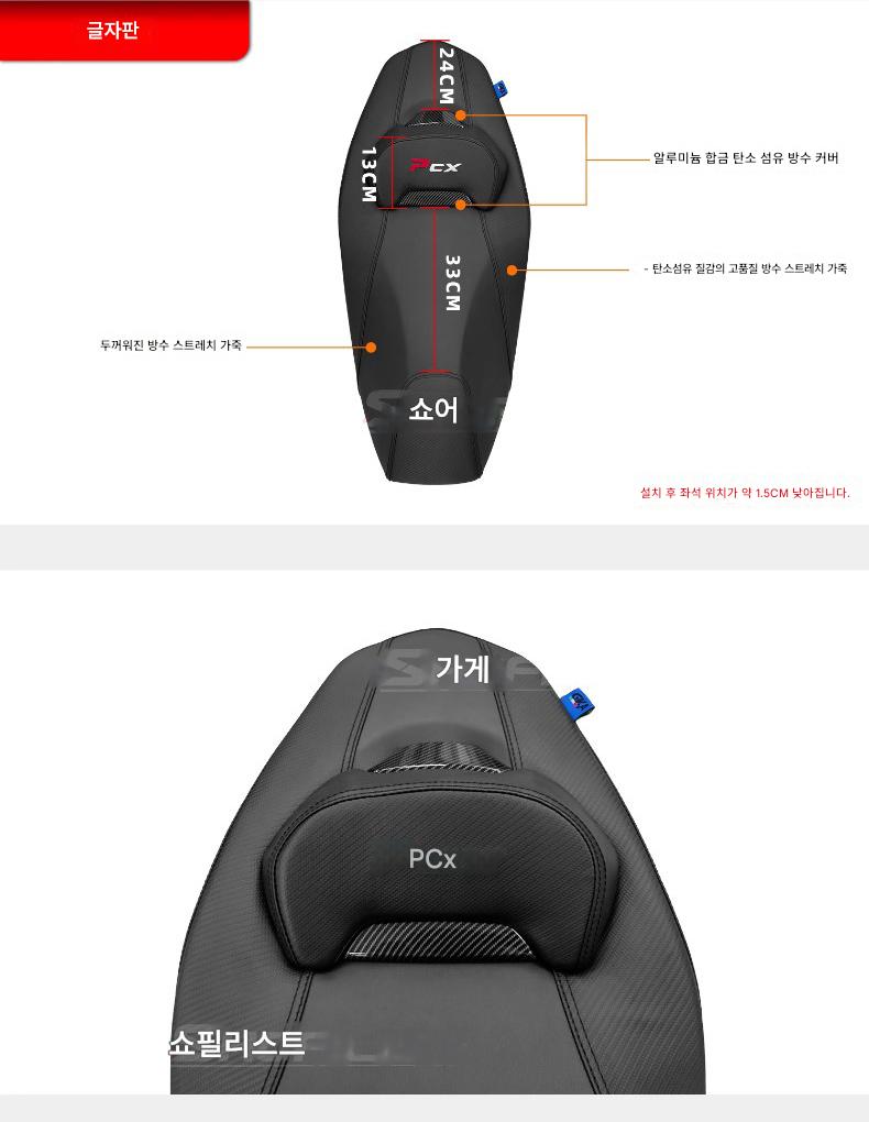 Honda PCX160 시트 쿠션 조립 가죽 두껍게 된 고밀도 라텍스 스펀지 허리 지지대 방수 시트 백 개조에 적합