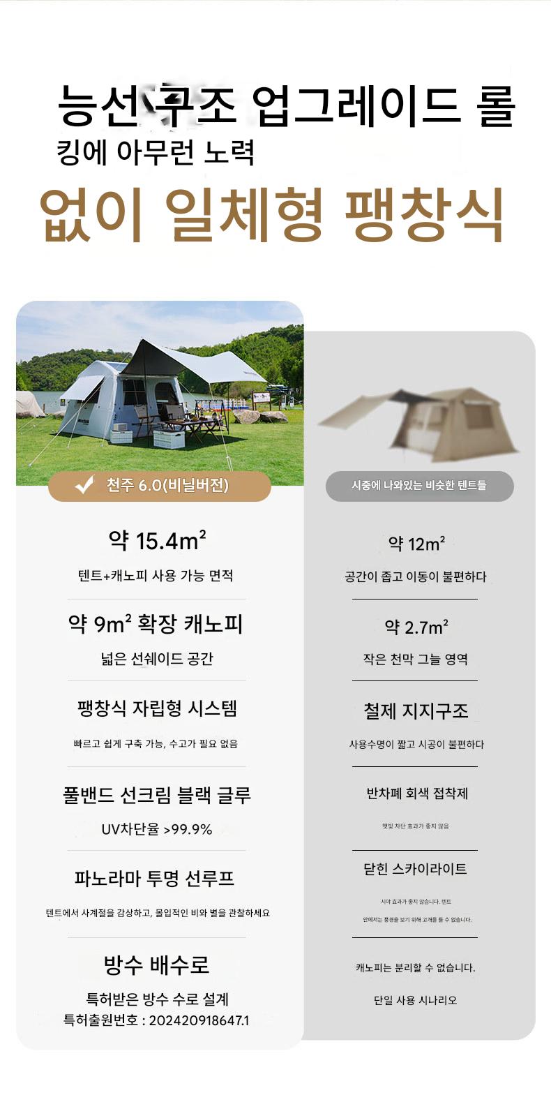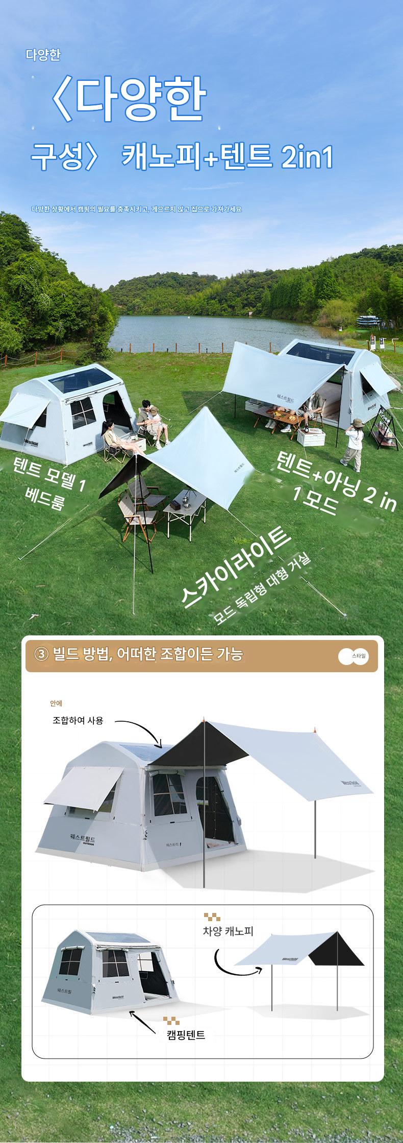 I Feichuanju 팽창식 텐트 전자동 텐트 야외 6-8인 캠핑 캠핑 장비 하룻밤 두 개의 침실과 한 개의 거실