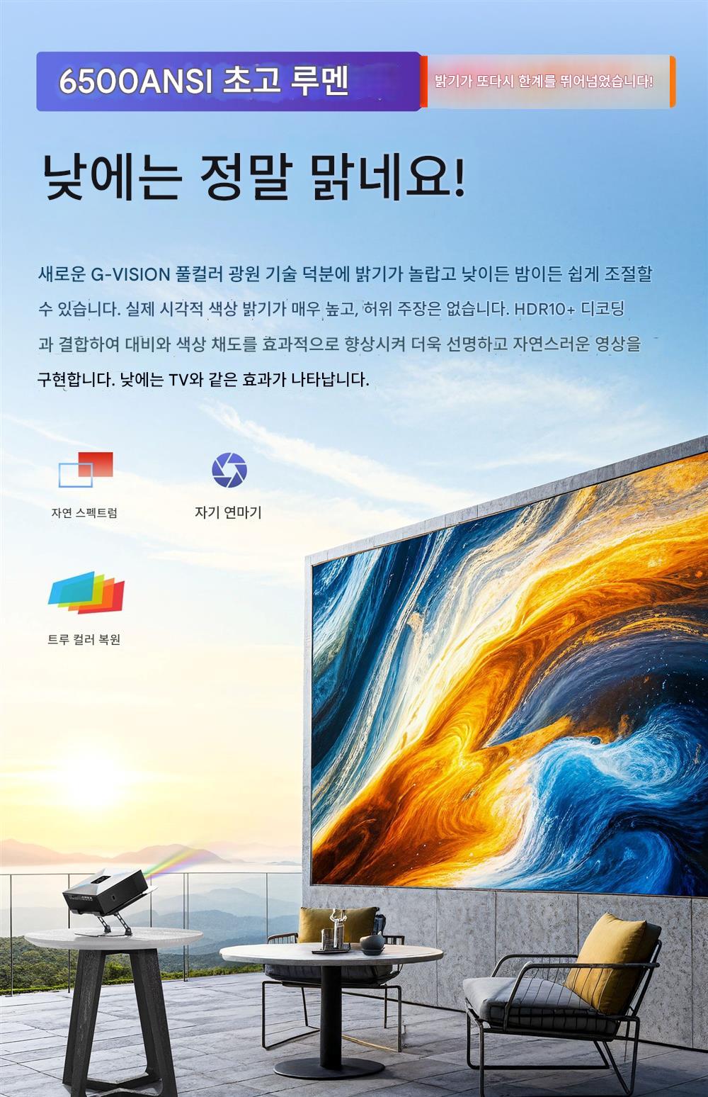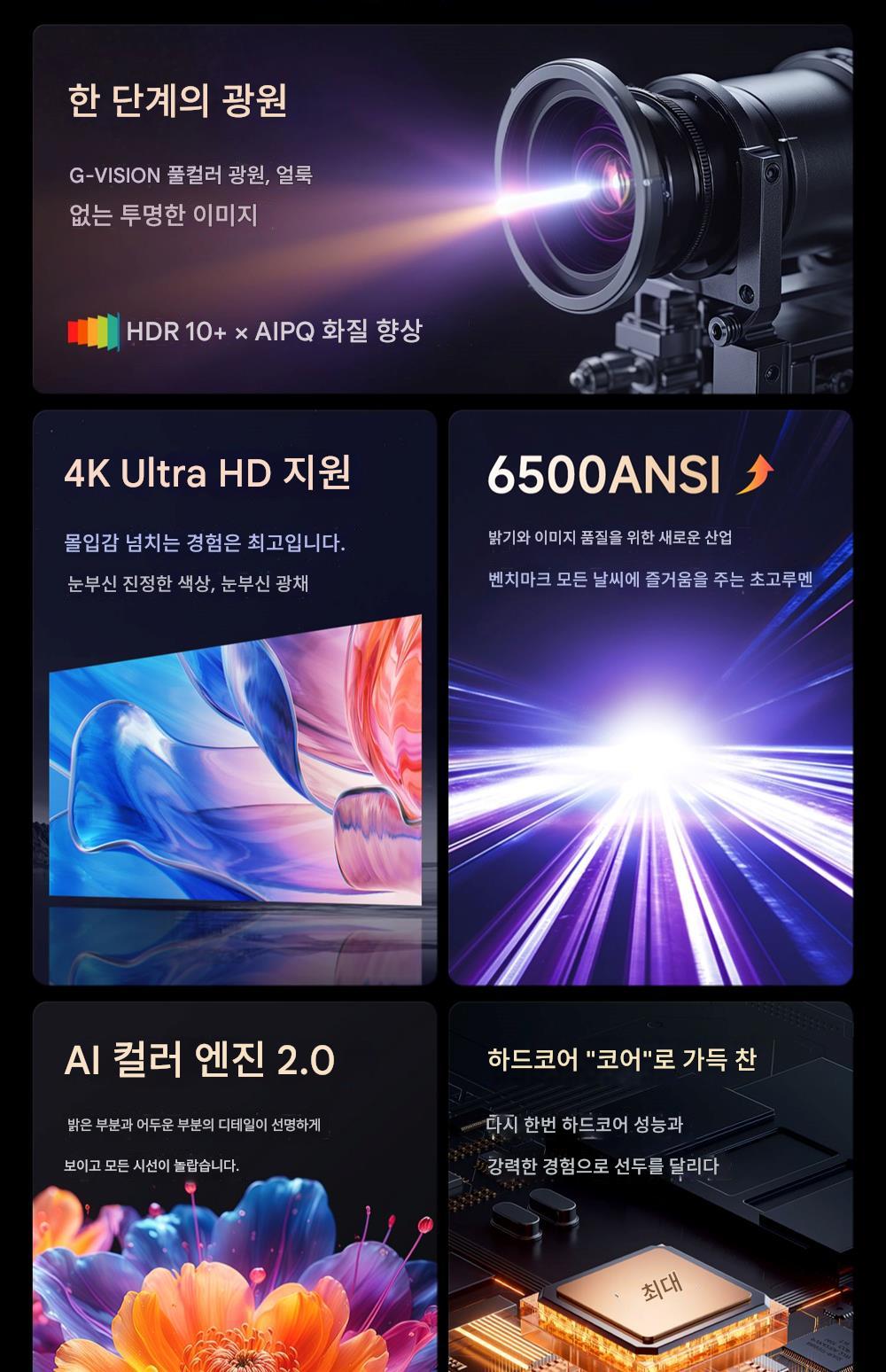 iFlytek 공식 플래그십 고휘도 6500루멘 레이저 프로젝터 홈 주간 4k 초고선명 홈시어터 사무실 컨퍼런스 프로젝터 B&B 호텔 야외 캠핑 KTV 전용
