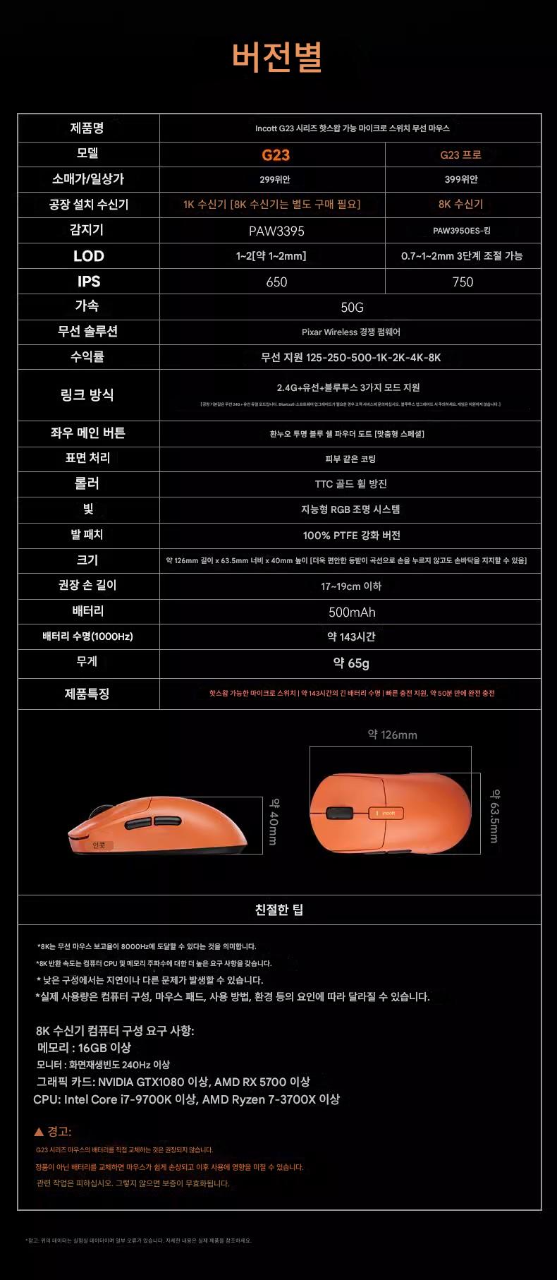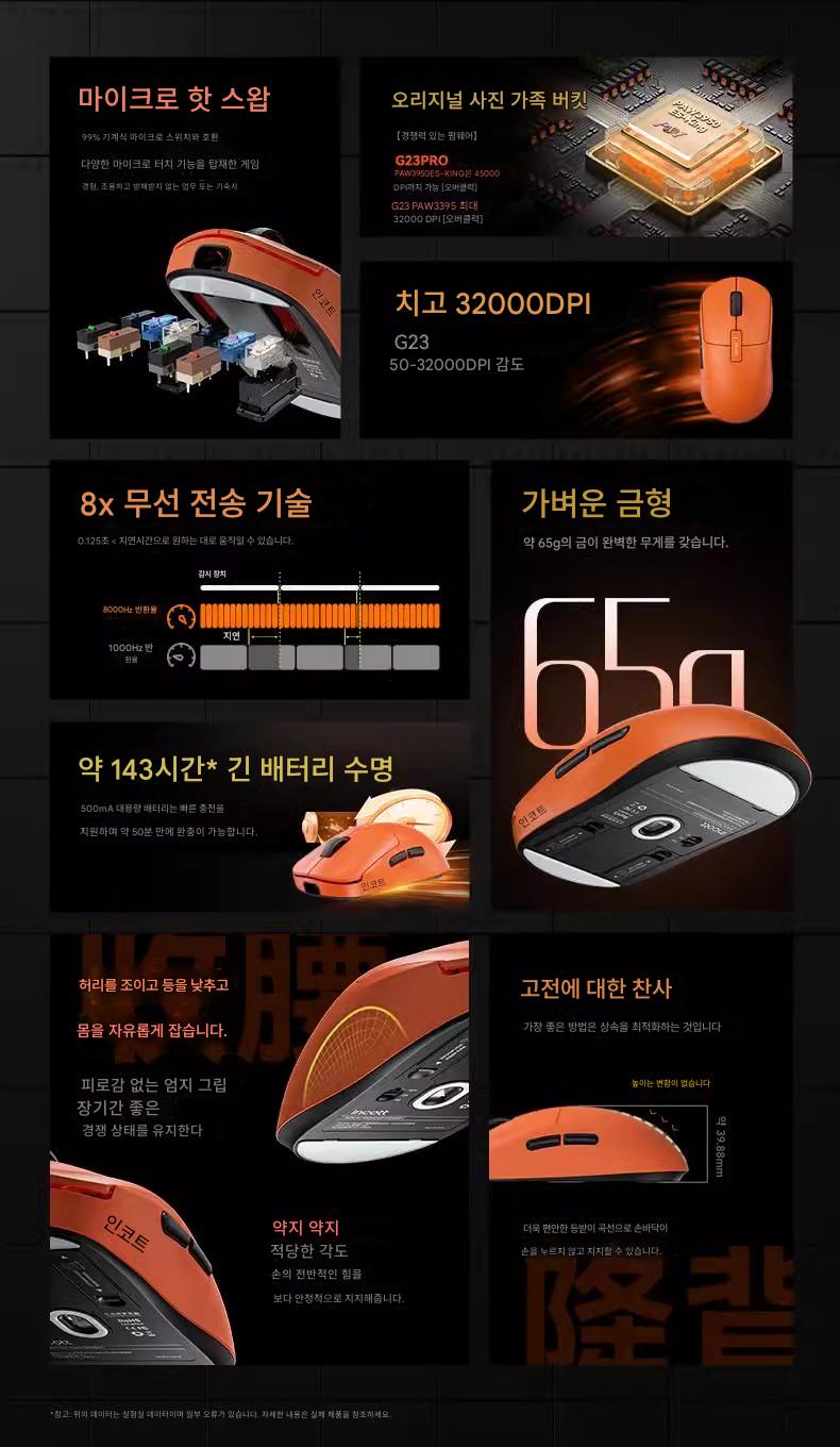 Incott G23 무선 마우스 핫스왑 가능 마이크로 스위치 장수명 게임용 마우스, 게임 및 사무용으로 전용