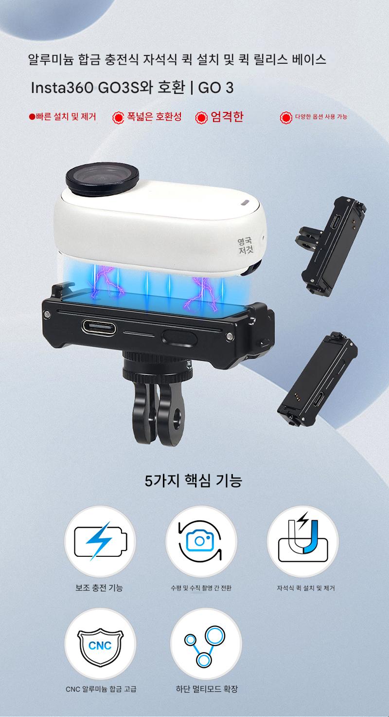 Insta360 GO3 썸 액션 카메라 자석베이스 충전식 GO 3S 퀵 릴리스 브라켓에 적용 가능