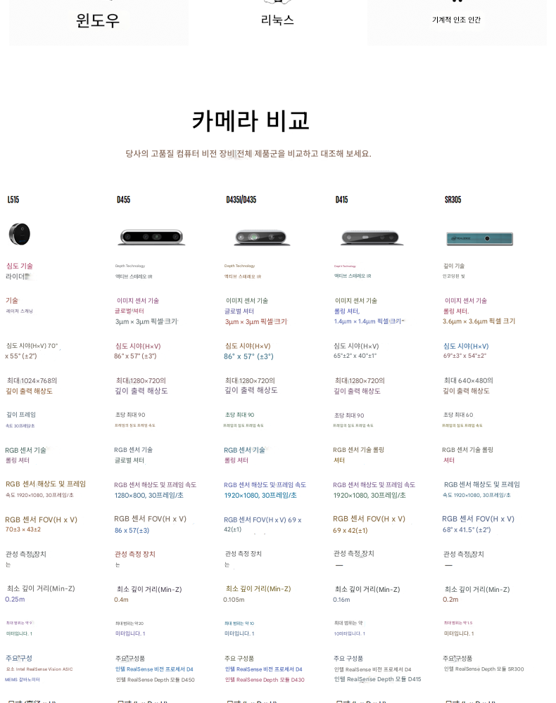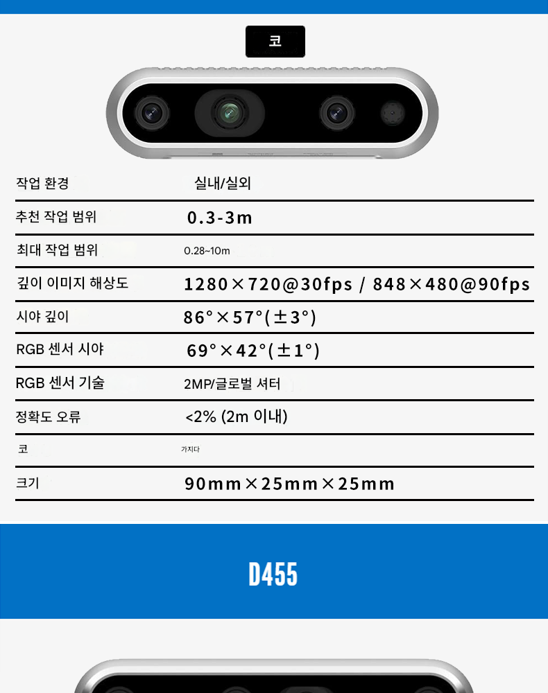 Intel RealSense D435 D435i D455 Intel RealSense 깊이 카메라 스테레오 쌍안경