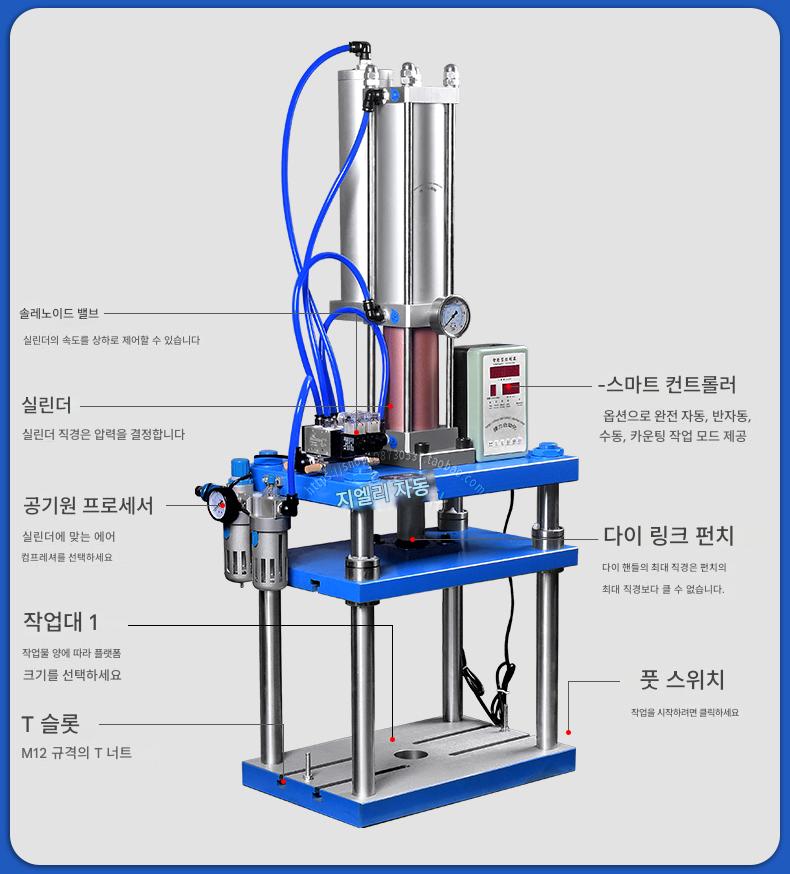 Jieli 단일 컬럼 공압 펀치 프레스 4 컬럼 2 플레이트 공압 펀치 프레스 소형 프레스 3 플레이트 가스-액체 부스터