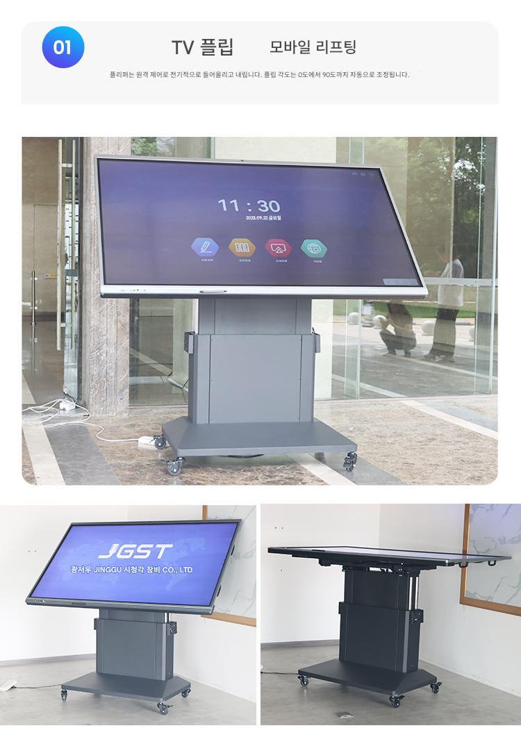 Jinggu 98 86인치 TV 모바일 리프팅 스탠드 회의실 전자 샌드 테이블 터치 올인원 머신 전기 플립