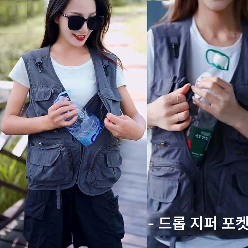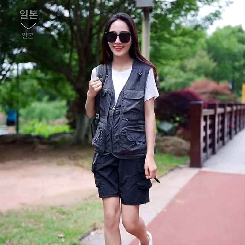 JPDUN/봄과 여름 남성용 속건성 얇은 작업복 조끼 통기성 메시 다중 포켓 여성용 야외 낚시 및 등산 조끼