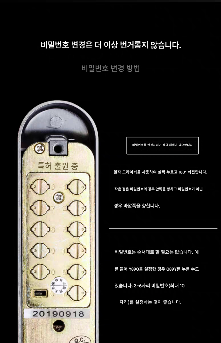 Kaisheman 3세대 방수 양면 기계식 비밀번호 잠금장치 알루미늄 아트 아이언 아트 안뜰 문 잠금장치 정원 문 방수 비밀번호 잠금장치