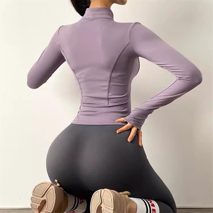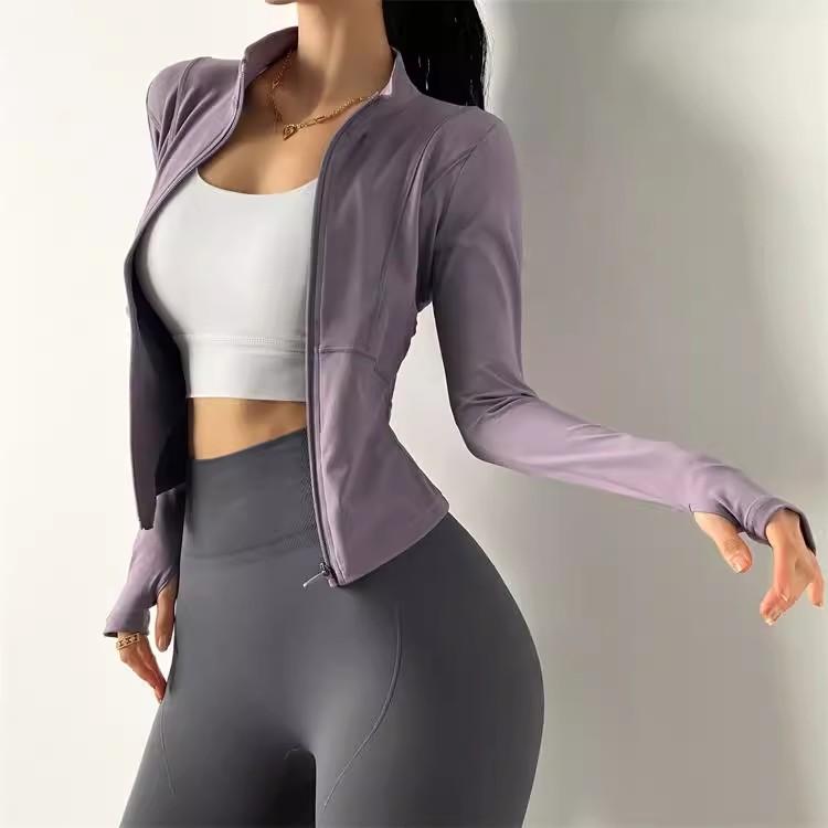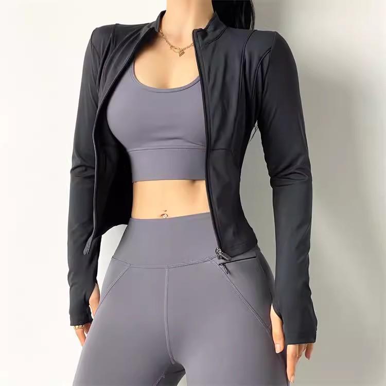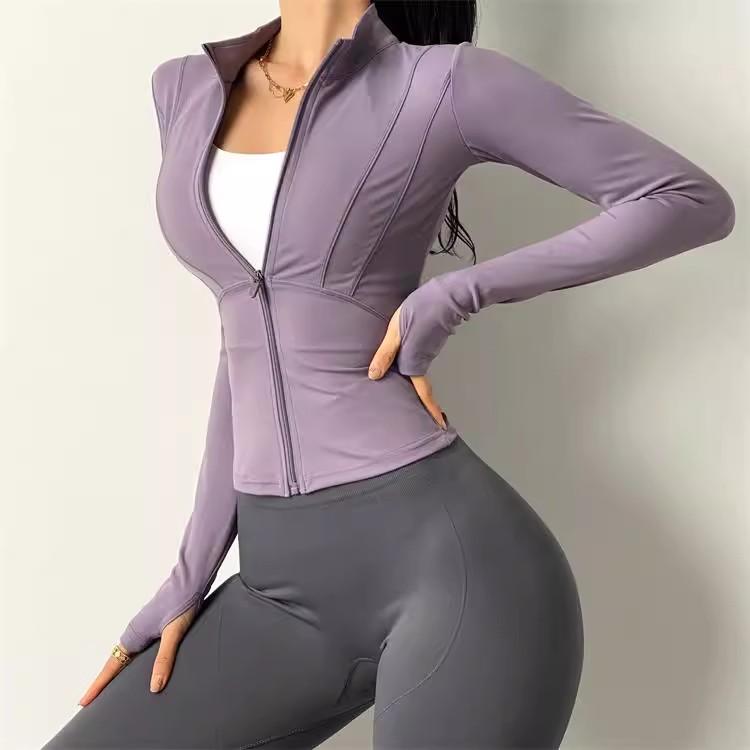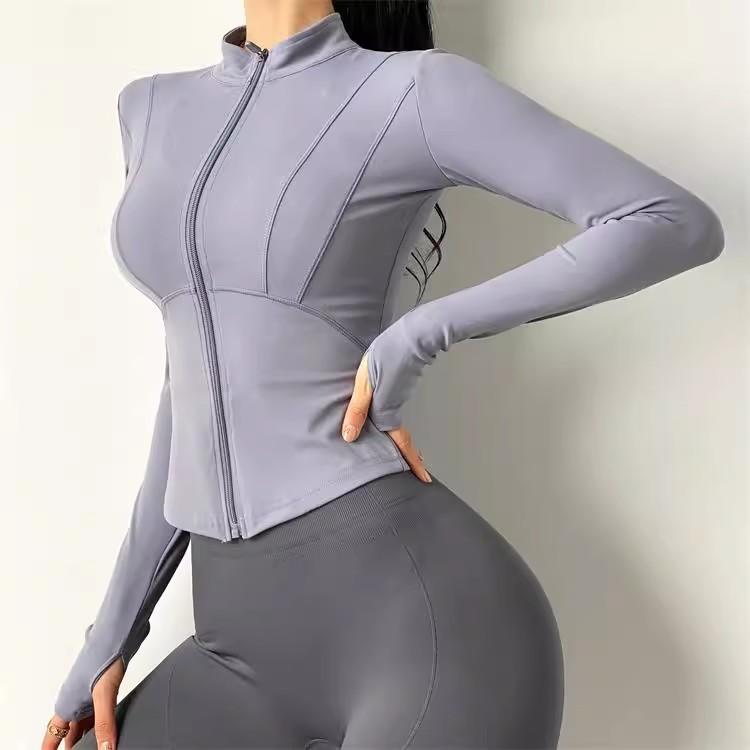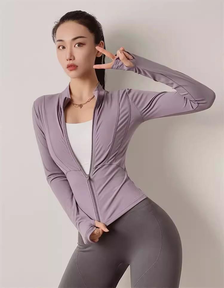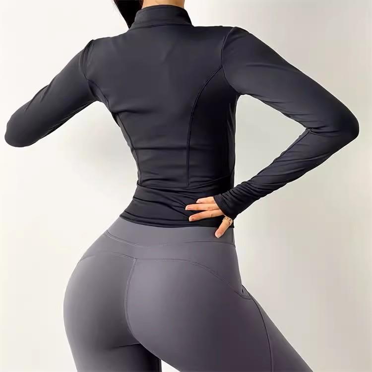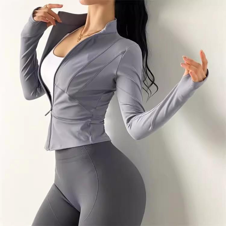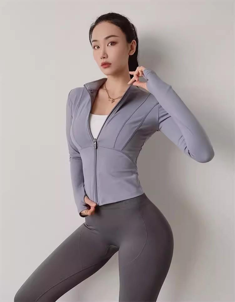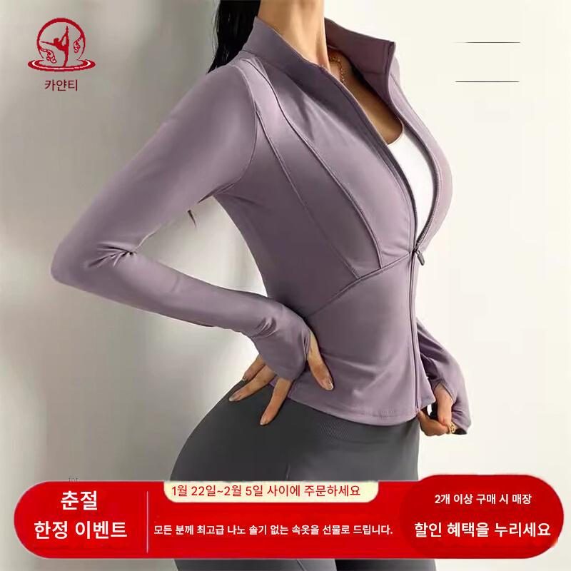 KAYANTY 가을과 겨울 허리 슬리밍 요가복 여성용 타이트 탄성 샌딩 속건 재킷 트레이닝 스포츠웨어