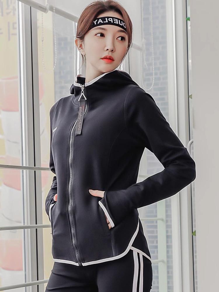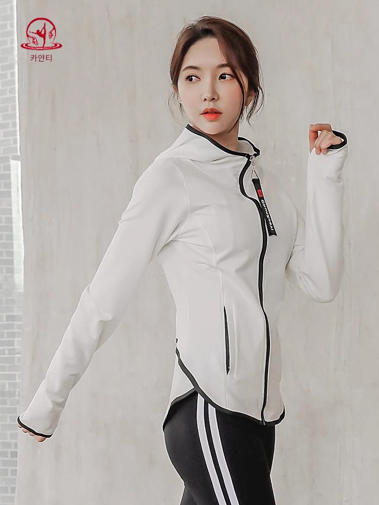KAYANTY 러닝 스포츠 재킷 여성용 속건 요가복 야외 모닝 러닝 가을 겨울 플러스 벨벳 피트니스 상의 두꺼움