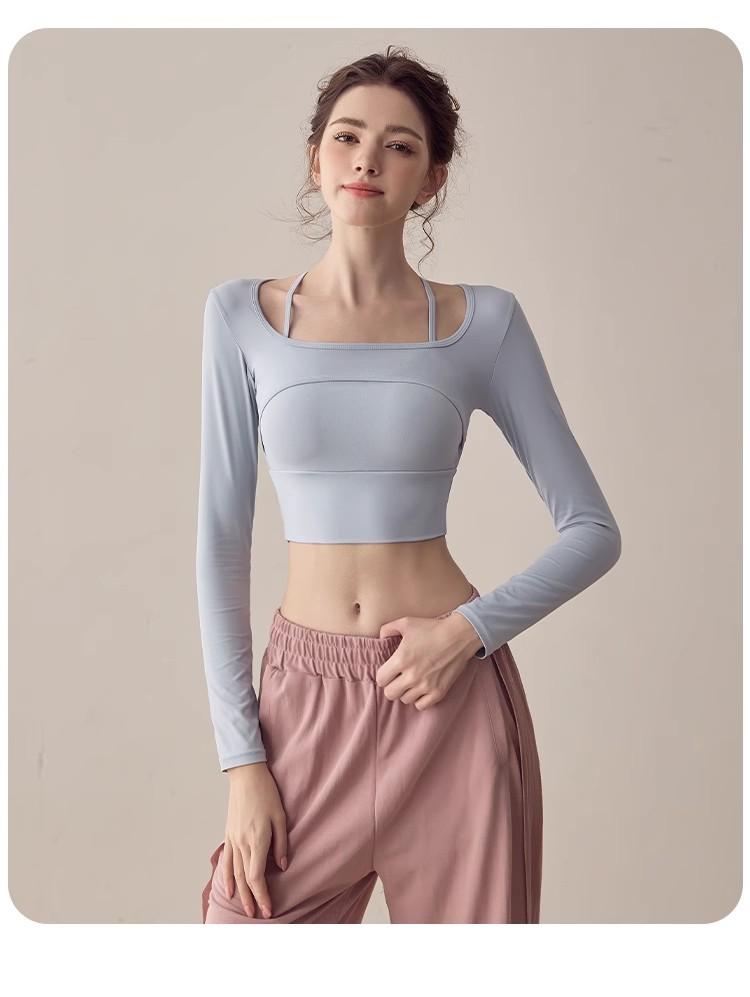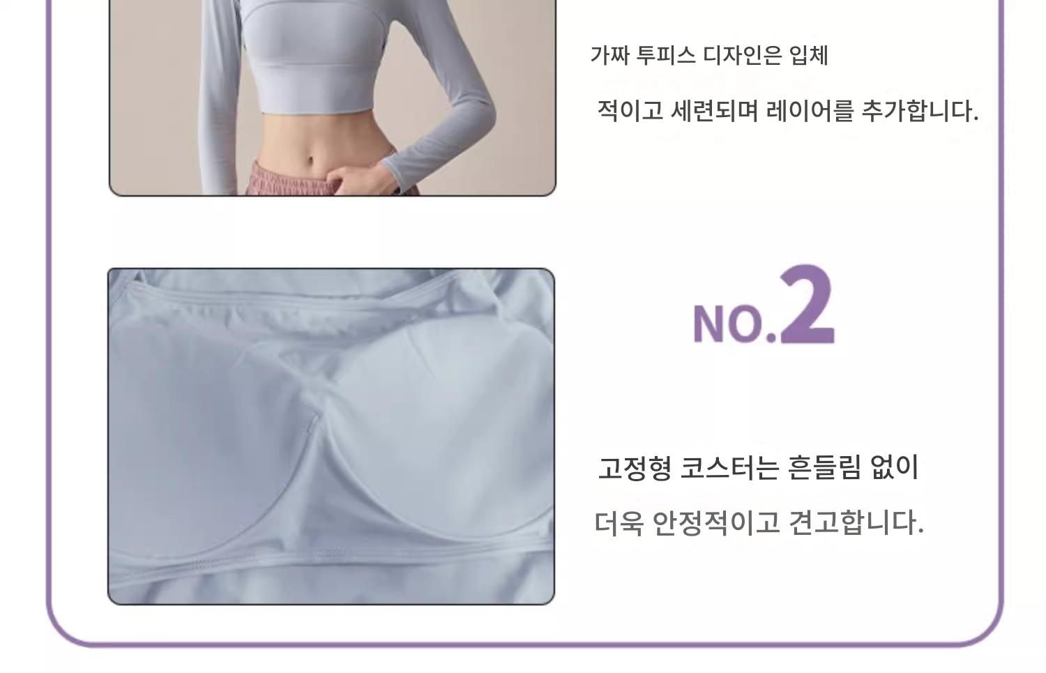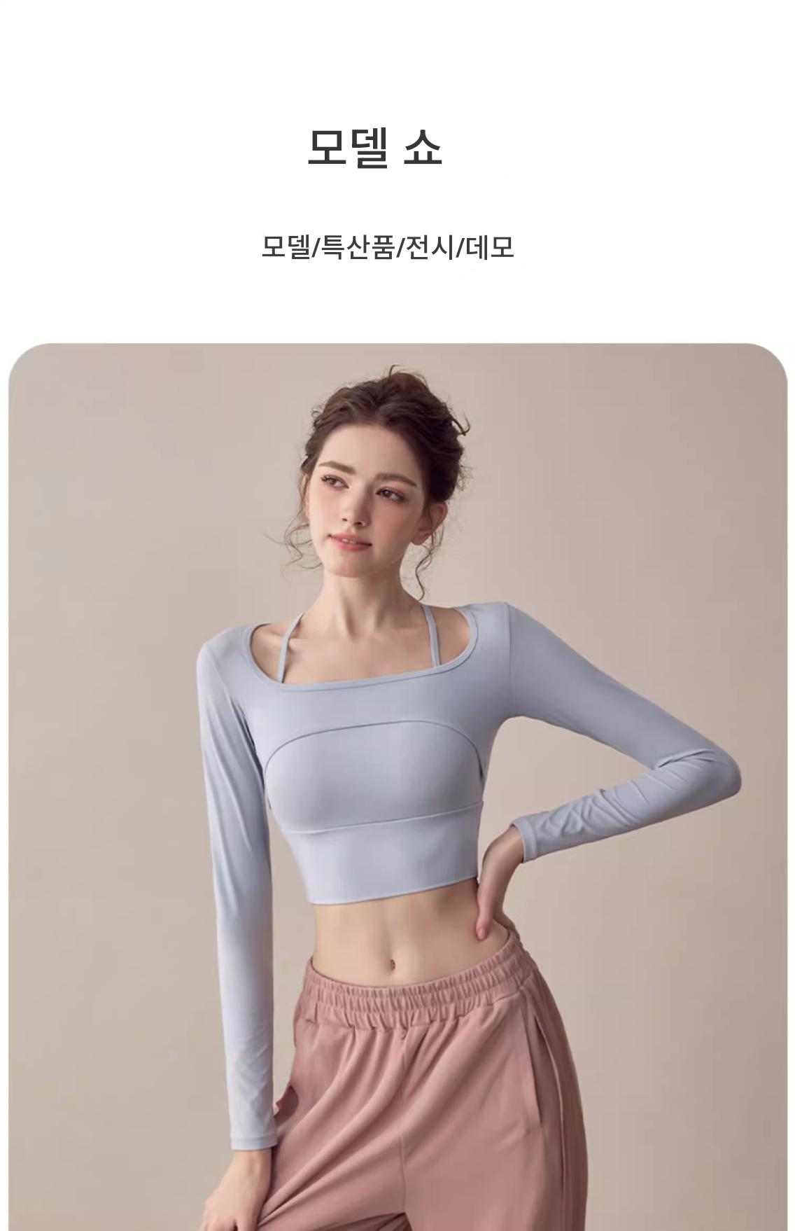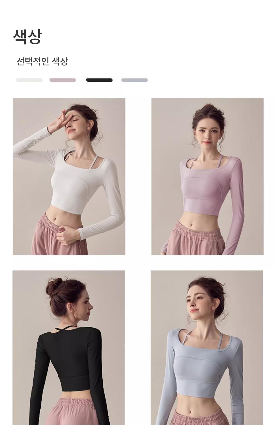 KAYANTY 여성용 고급 요가 상의 가슴 패드가 있는 가짜 2피스 피트니스 긴팔 홀터넥 요가복 짧은 새 상품의 첫 상품평을 남겨주세요