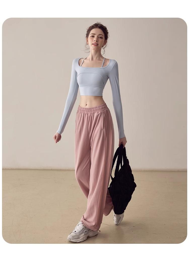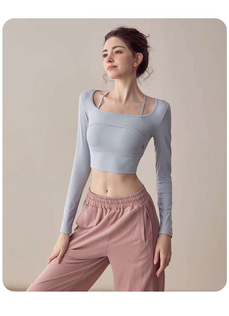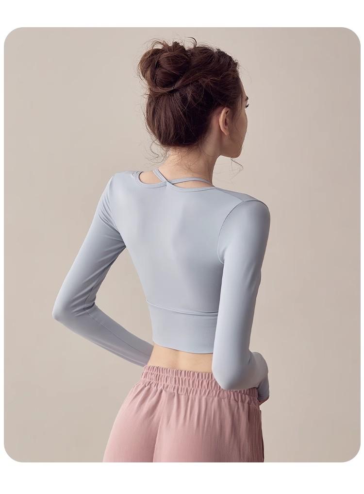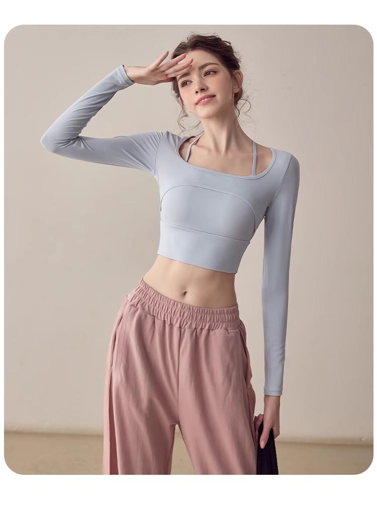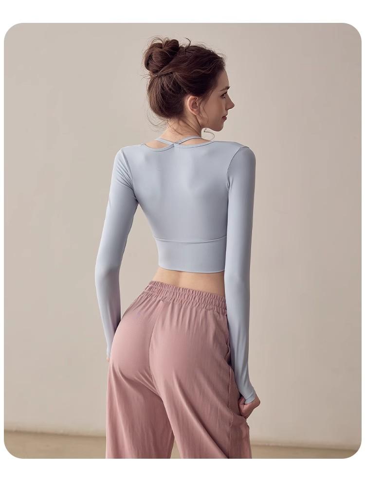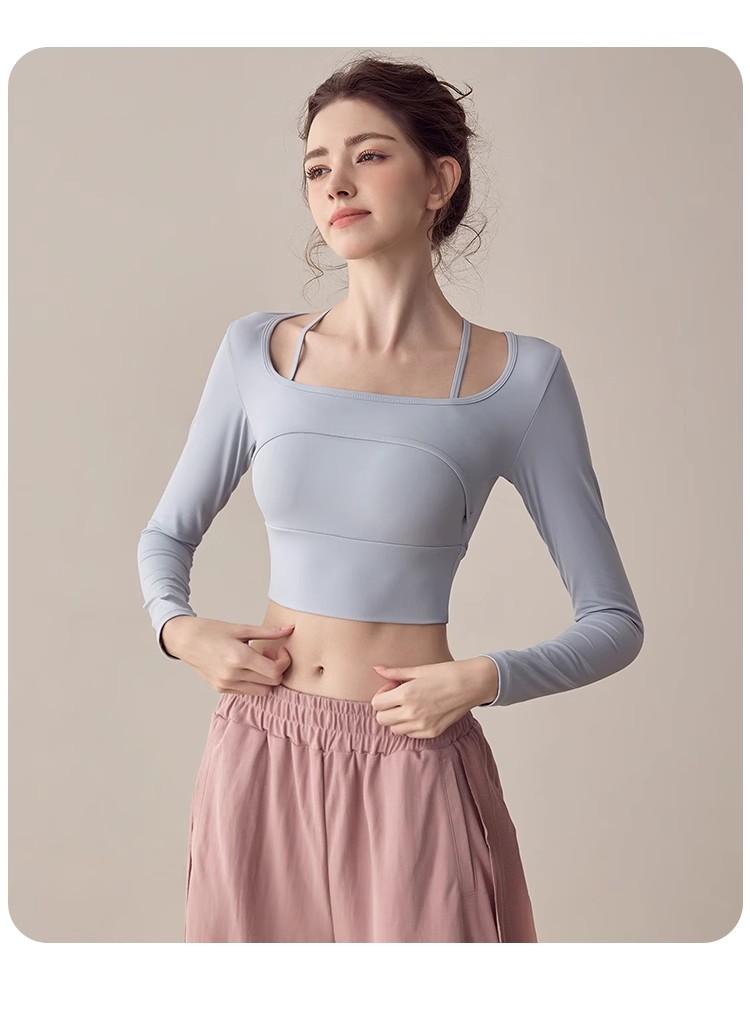 KAYANTY 여성용 고급 요가 상의 가슴 패드가 있는 가짜 2피스 피트니스 긴팔 홀터넥 요가복 짧은 새 상품의 첫 상품평을 남겨주세요