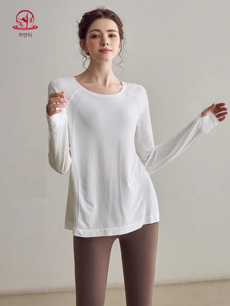 KAYANTY 요가 상의 여성용 루즈 슬림 피트니스 긴팔 라운드넥 티셔츠 프로페셔널 필라테스 스포츠웨어 신제품