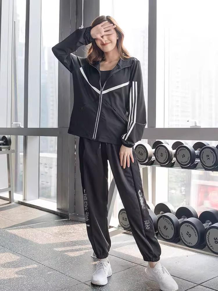 KAYANTY 체육관 러닝 스포츠 슈트 여성 가을 겨울 야외 아침 러닝 슬림 요가복 느슨한 속건성 의류