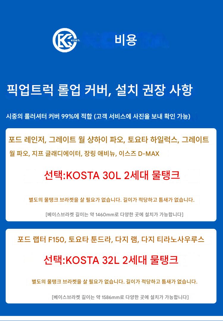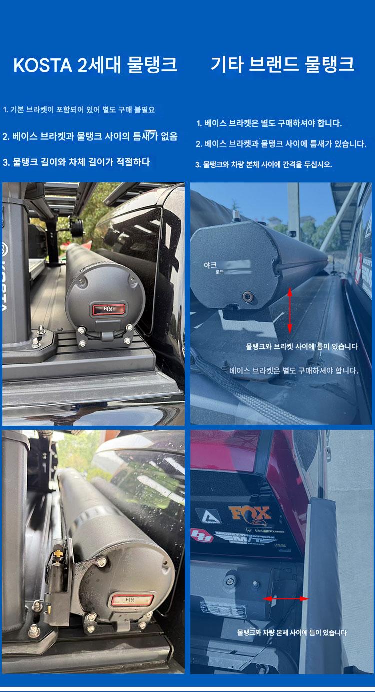 KOSTA 2세대 차량용 물탱크 루프 플랫폼 가압샤워 태양열 난방 캠핑 대용량 물탱크