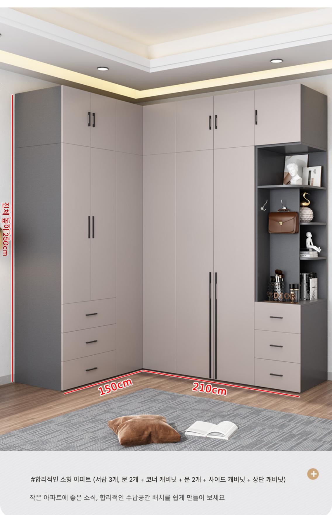 L자형 코너 옷장 홈 침실 작은 아파트 모던 심플 코너 90도 옷장 파티션 조합 캐비닛