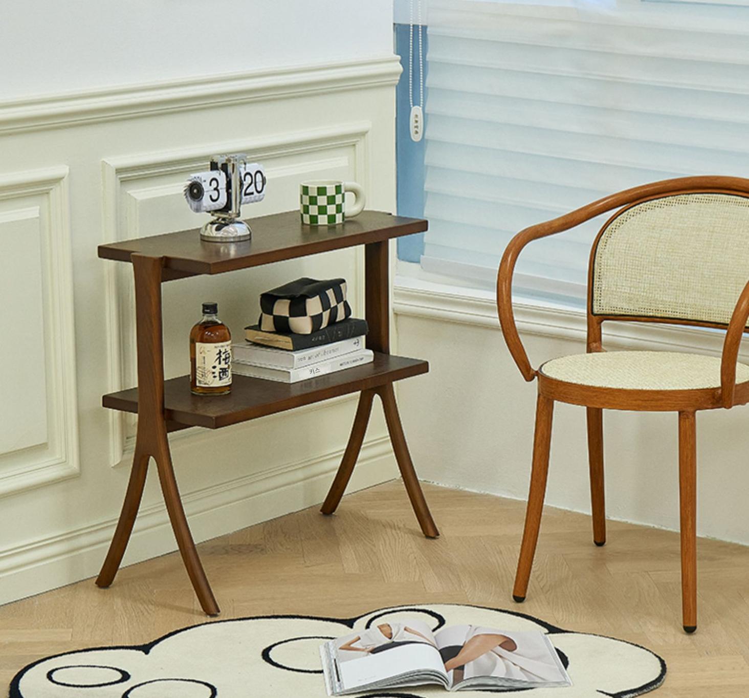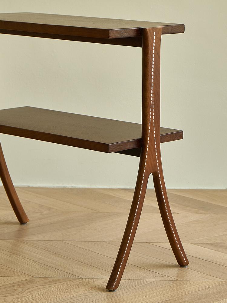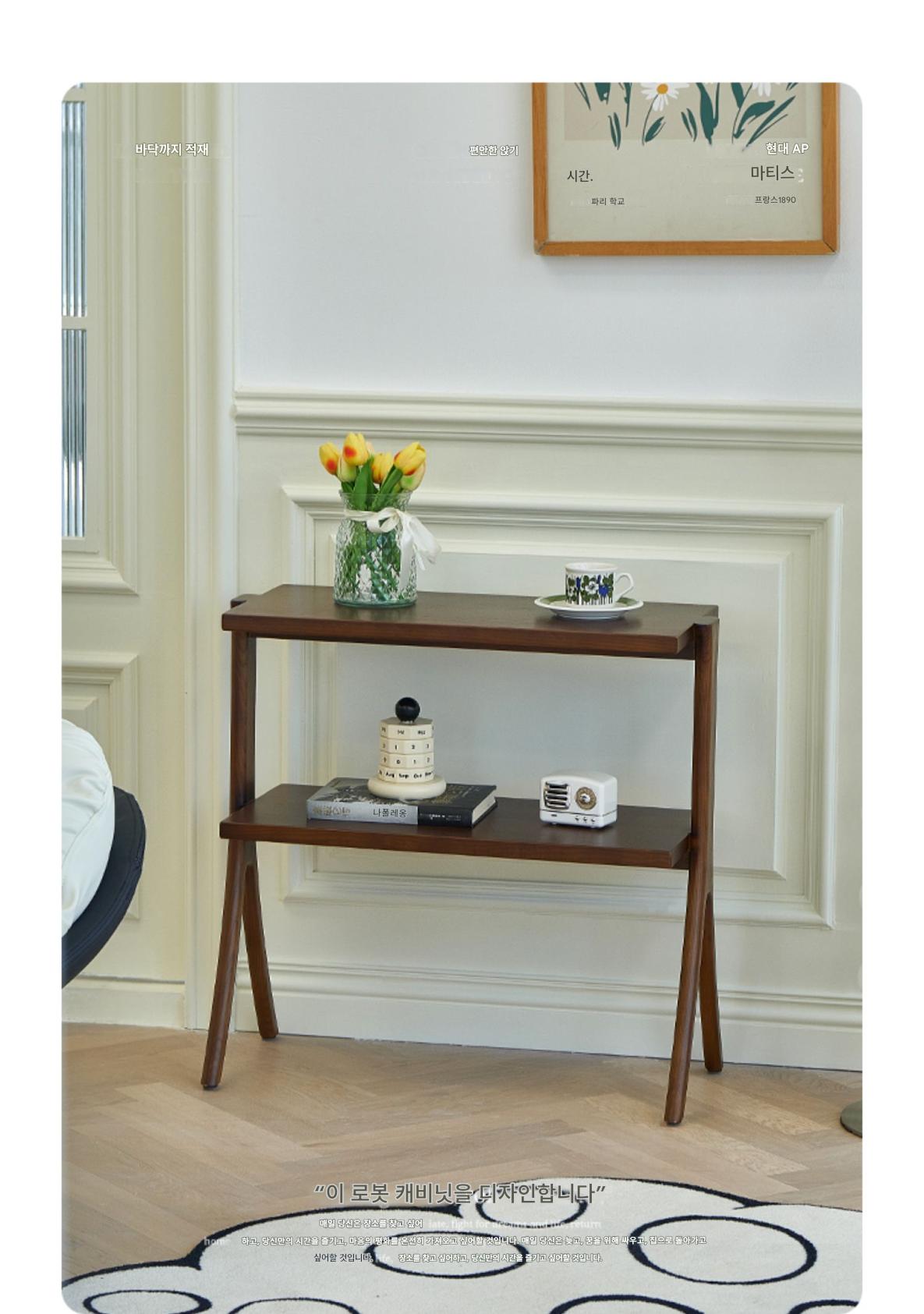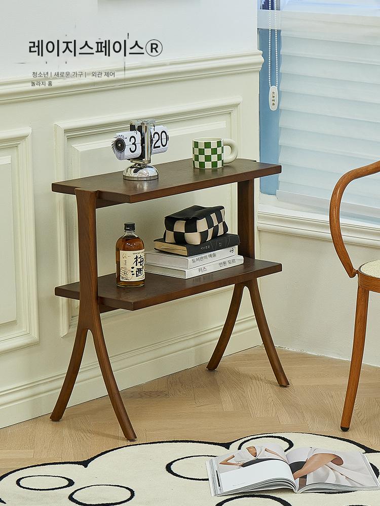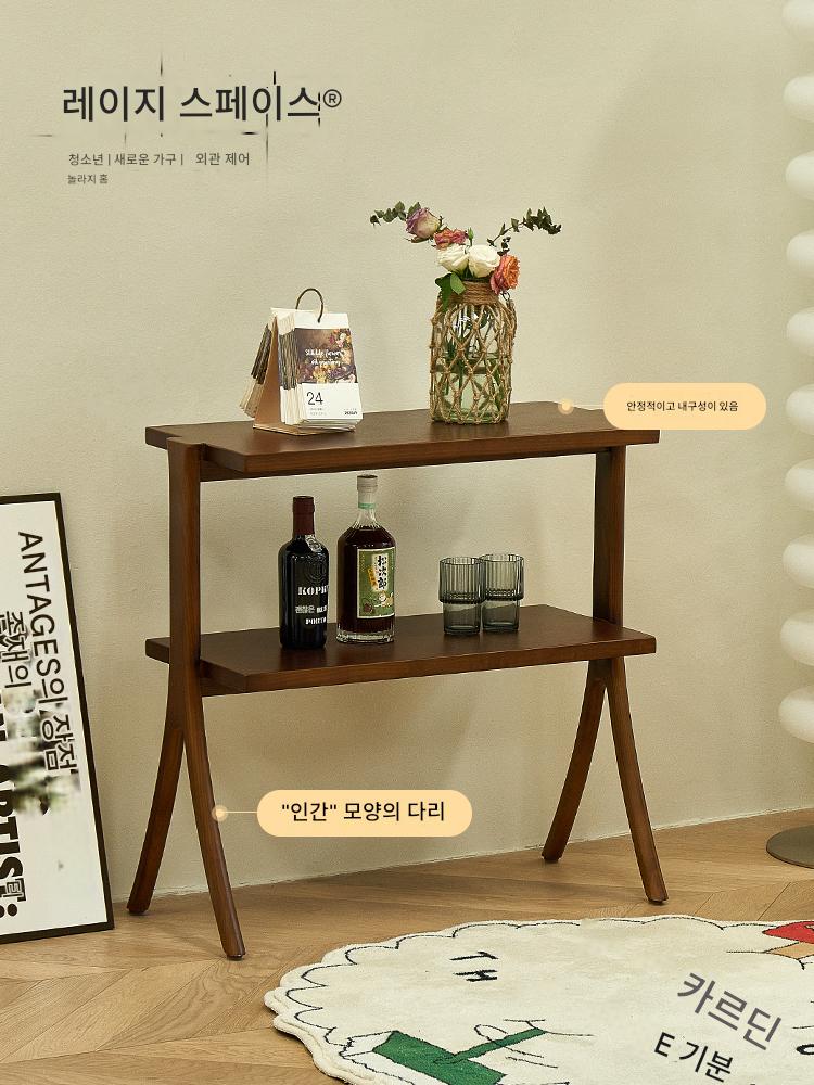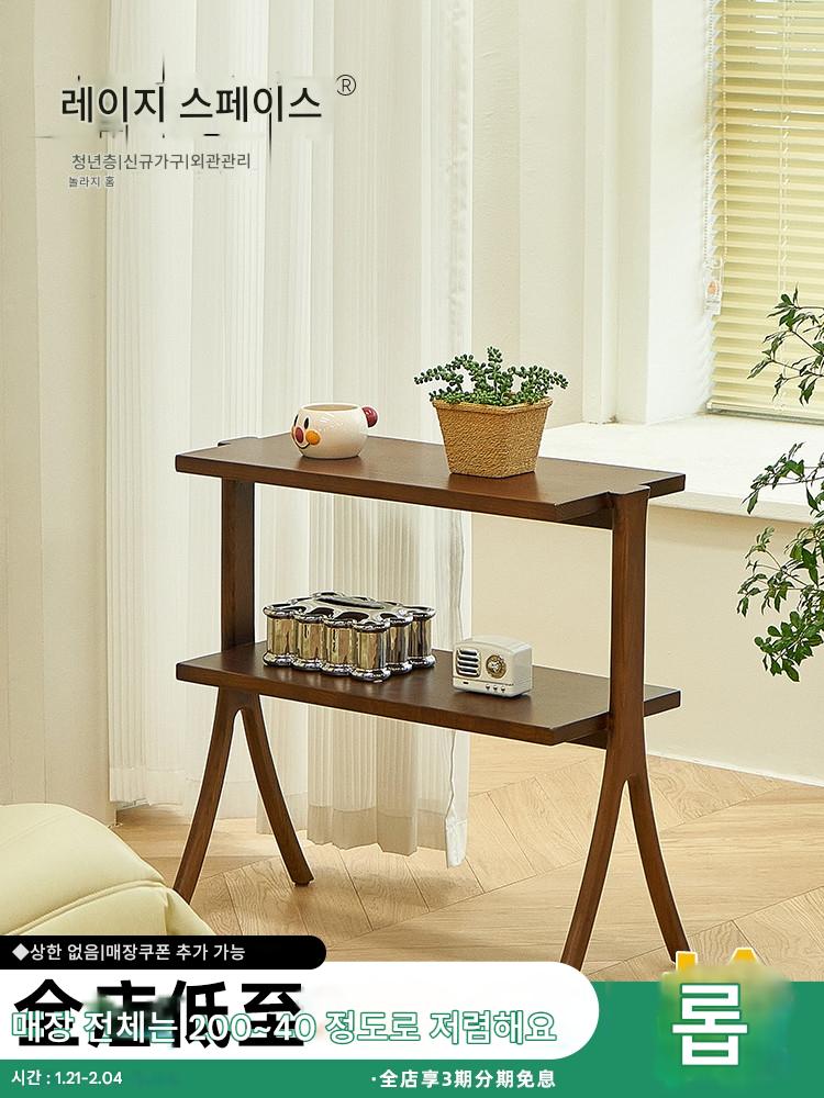 Lazy space wabi-sabi 스타일 수납 선반 홈 레트로 심플 책장 소형 아파트 견고한 나무 꽃꽂이 바닥 수납 선반