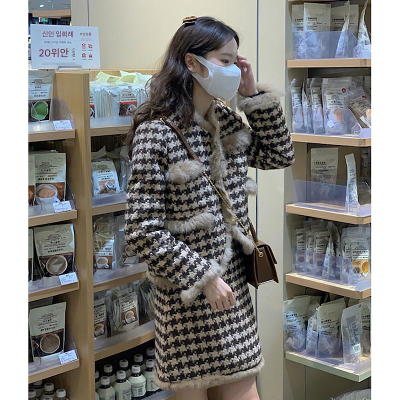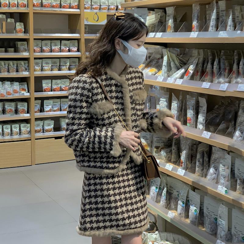 LILY MOST 기질 하운드투스 서양식 정장 여성 가을 겨울 신상 프랑스 스타일 작은 향수 스타일 세련된 투피스 정장